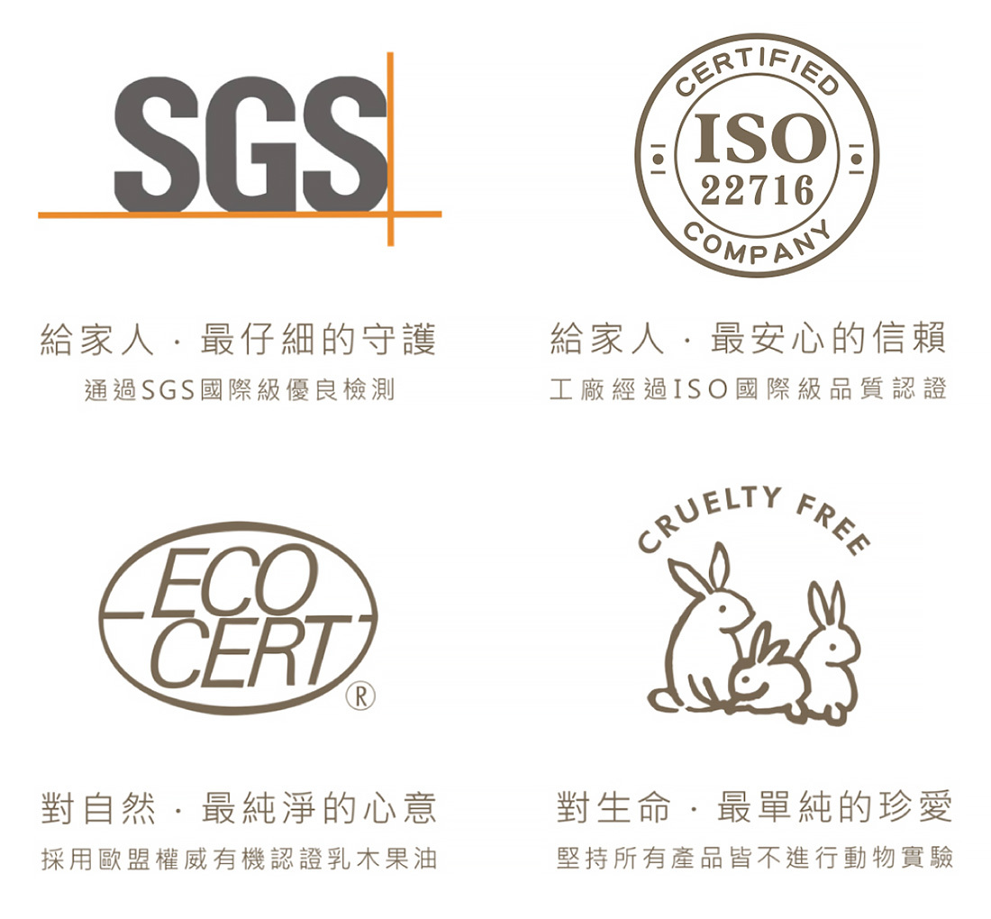 使用完全皂化之皂基製作,含水量低,細菌不易於皂生存、不易軟爛。雜質少,品質穩,消費者可安心使用。