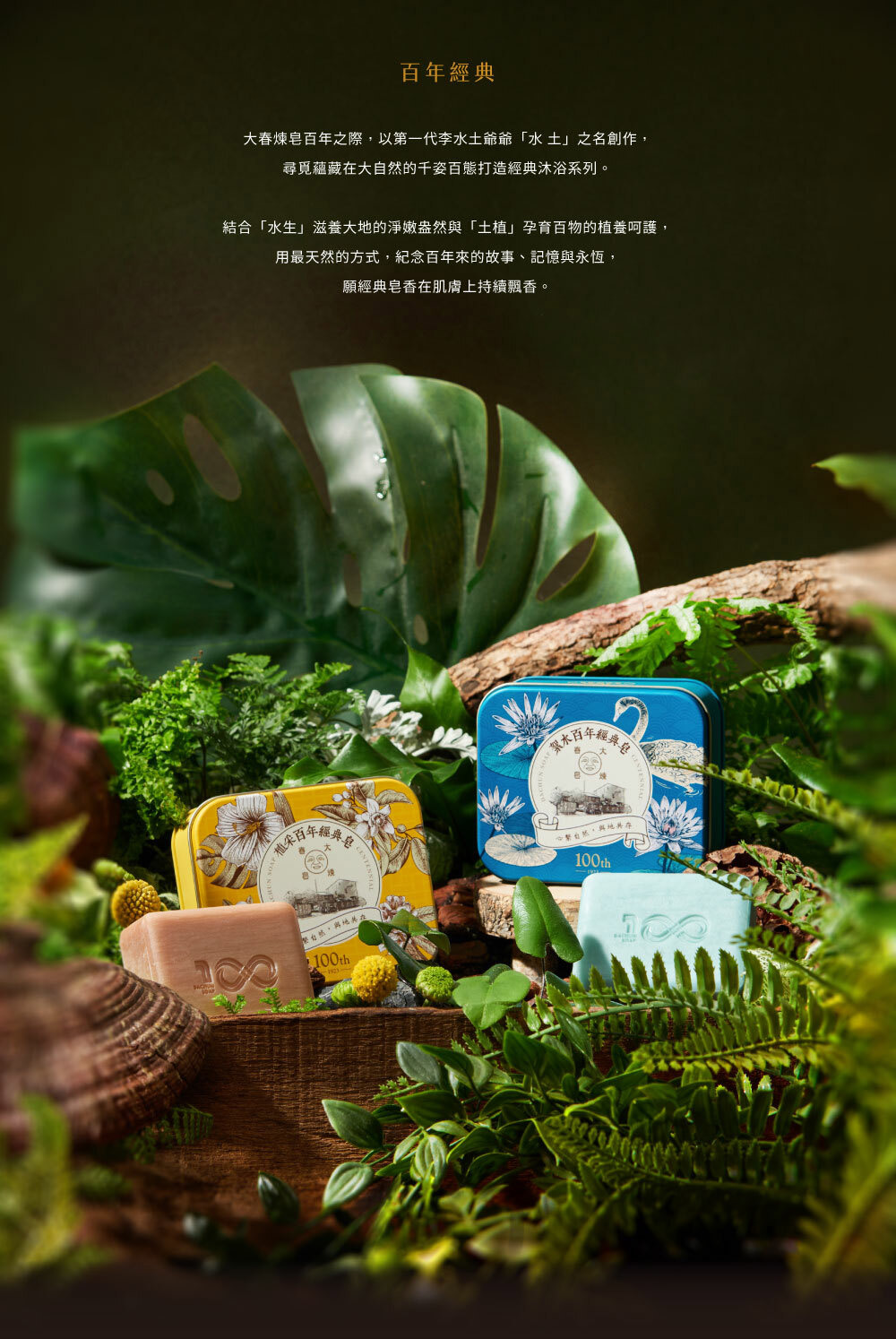 • 大春煉皂百年系列禮盒,以孕育百物的「水土」自然香氣入皂