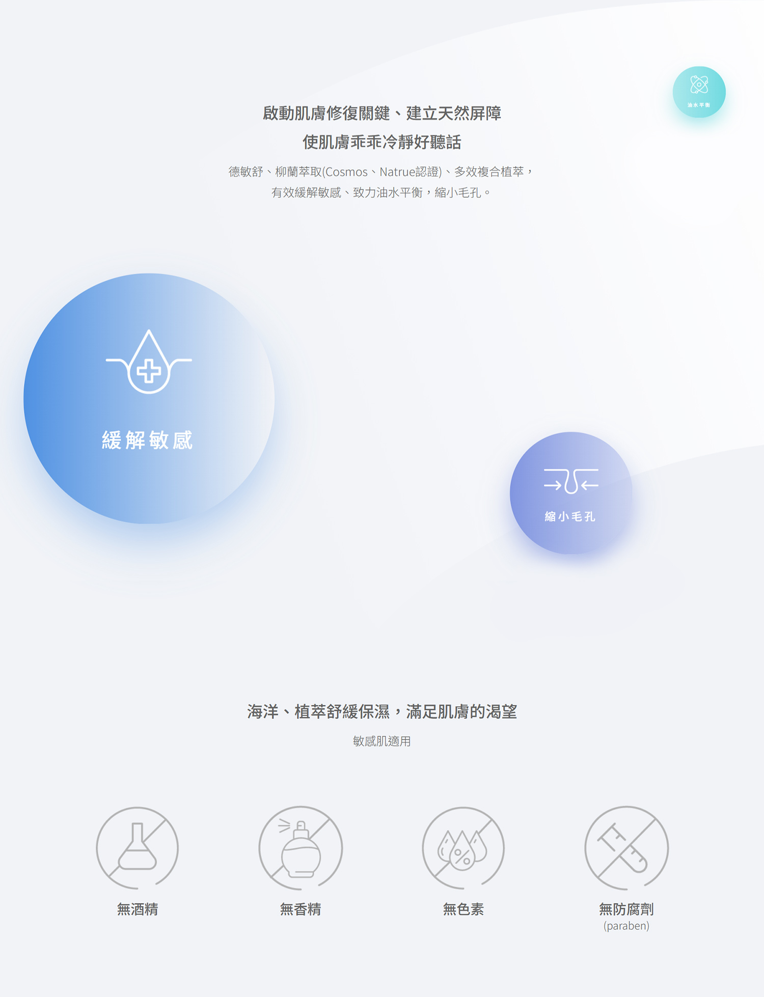 海洋、植萃舒緩保濕,滿足肌膚的渴望