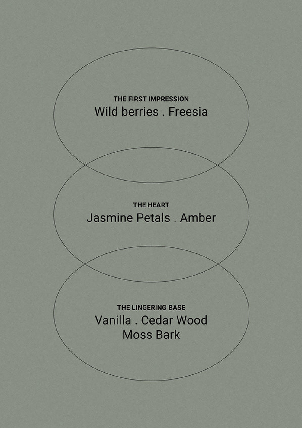 前調是濃鬱的野生漿果、盛開的小蒼蘭和茉莉,清新明亮,與溫暖的琥珀香調形成鮮明對比。