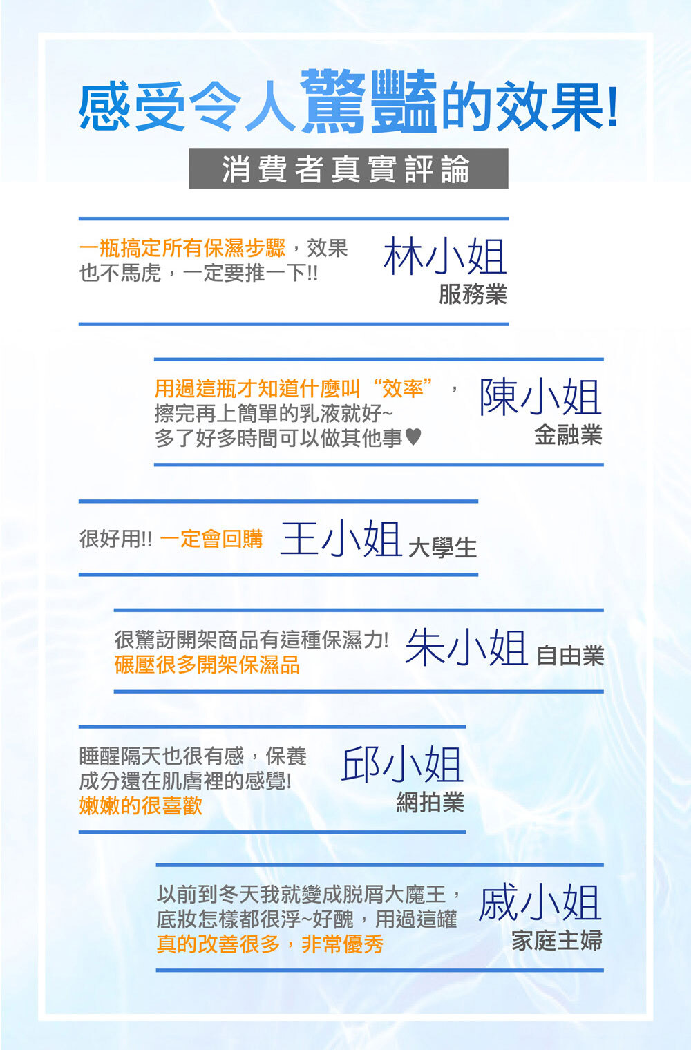 1.潔淨肌膚後,取適量塗擦於全臉輕輕按摩至吸收即可,請避開眼周。