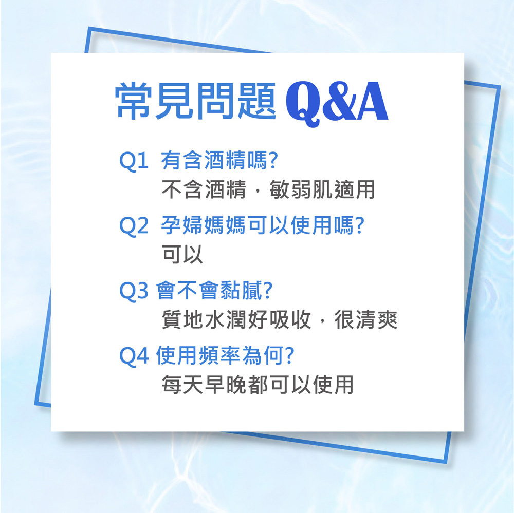2.欲濕敷時,取適量將化妝棉或面膜充分浸濕,敷於肌膚乾燥處五分鐘,即可有良好潤澤保濕效果。