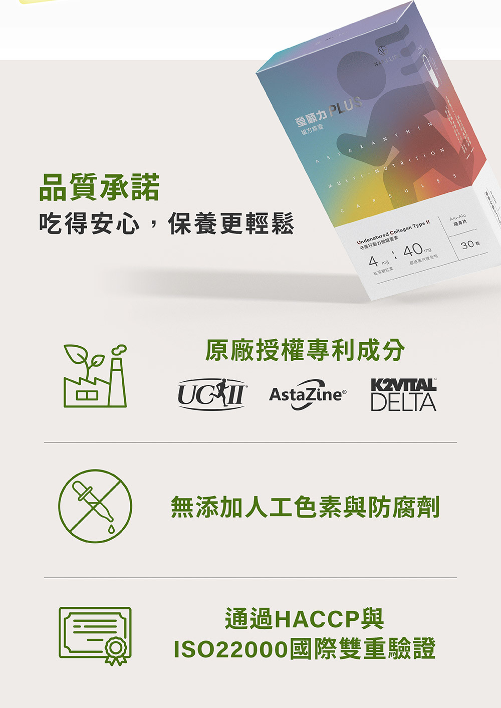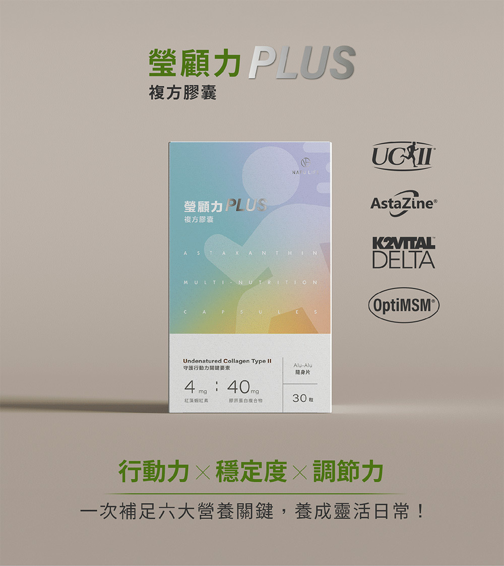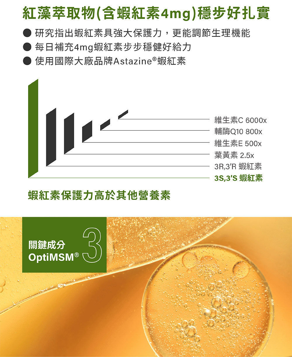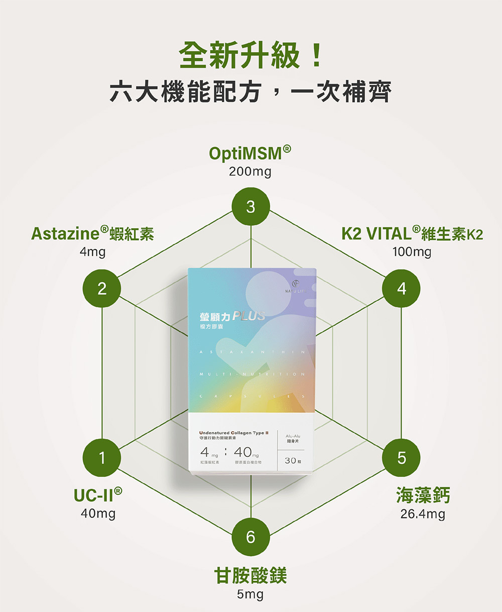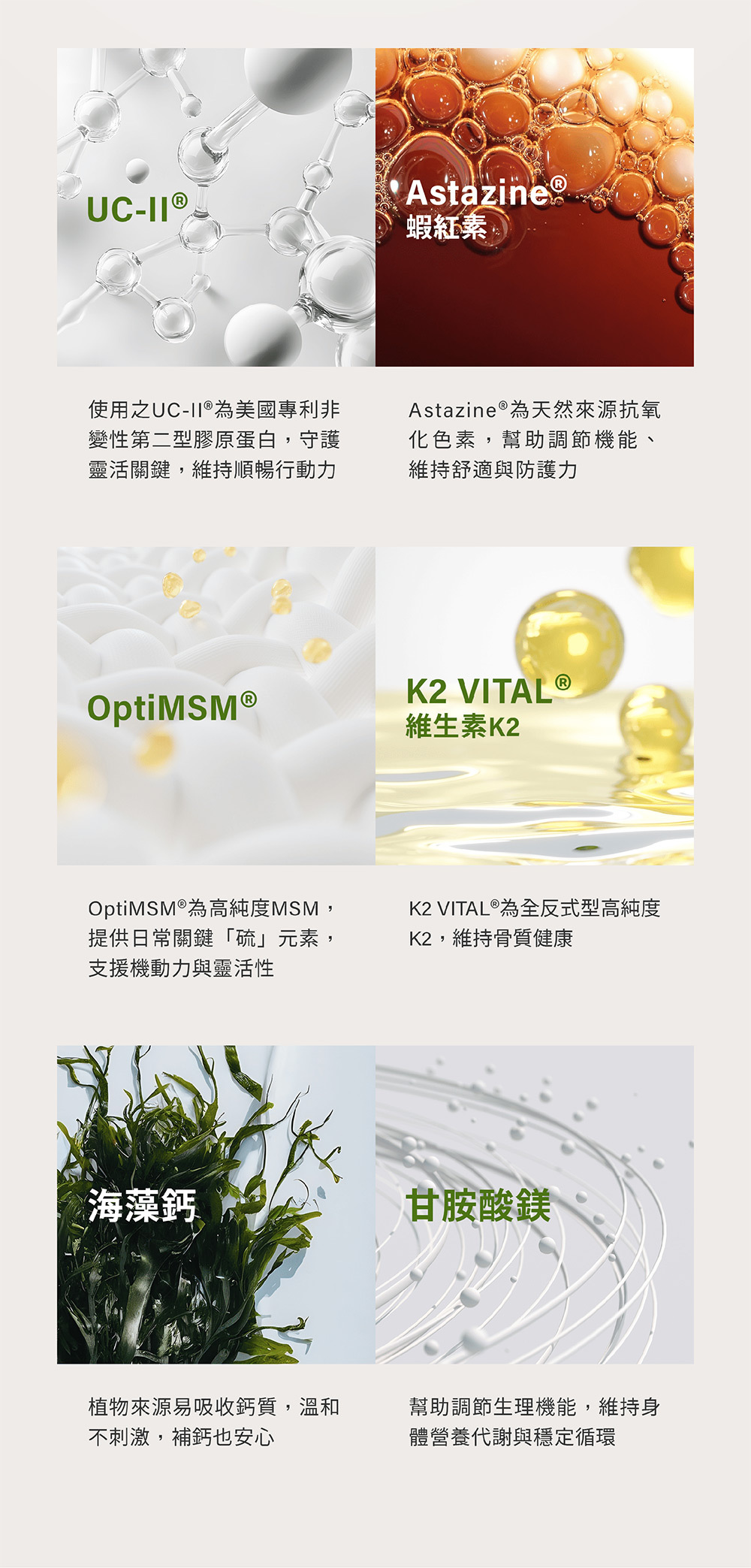 UC-II® 非變性膠原蛋白 ✕ Astazine® 蝦紅素 ✕ OptiMSM®