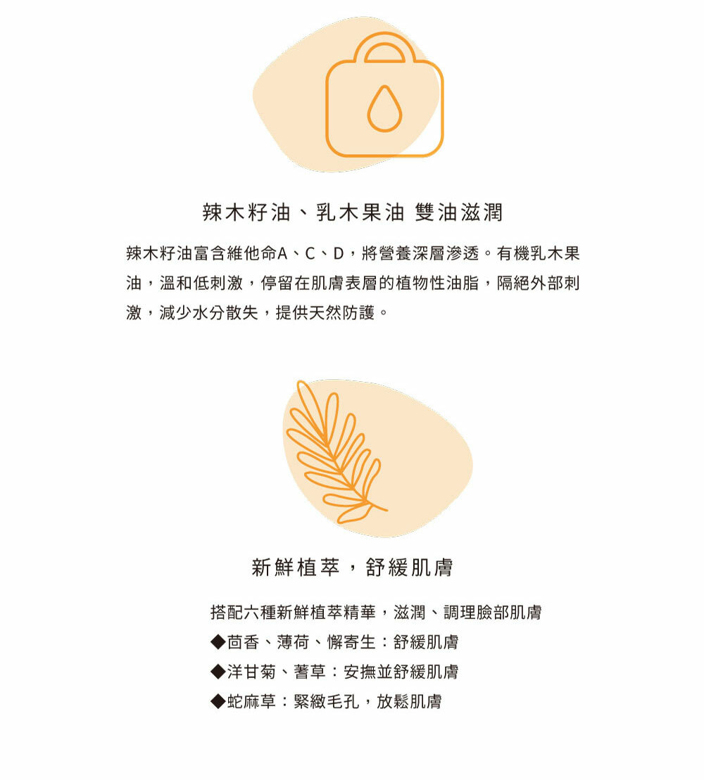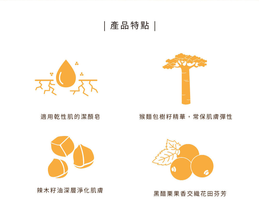 商品特色:潔淨、滋潤臉部肌膚