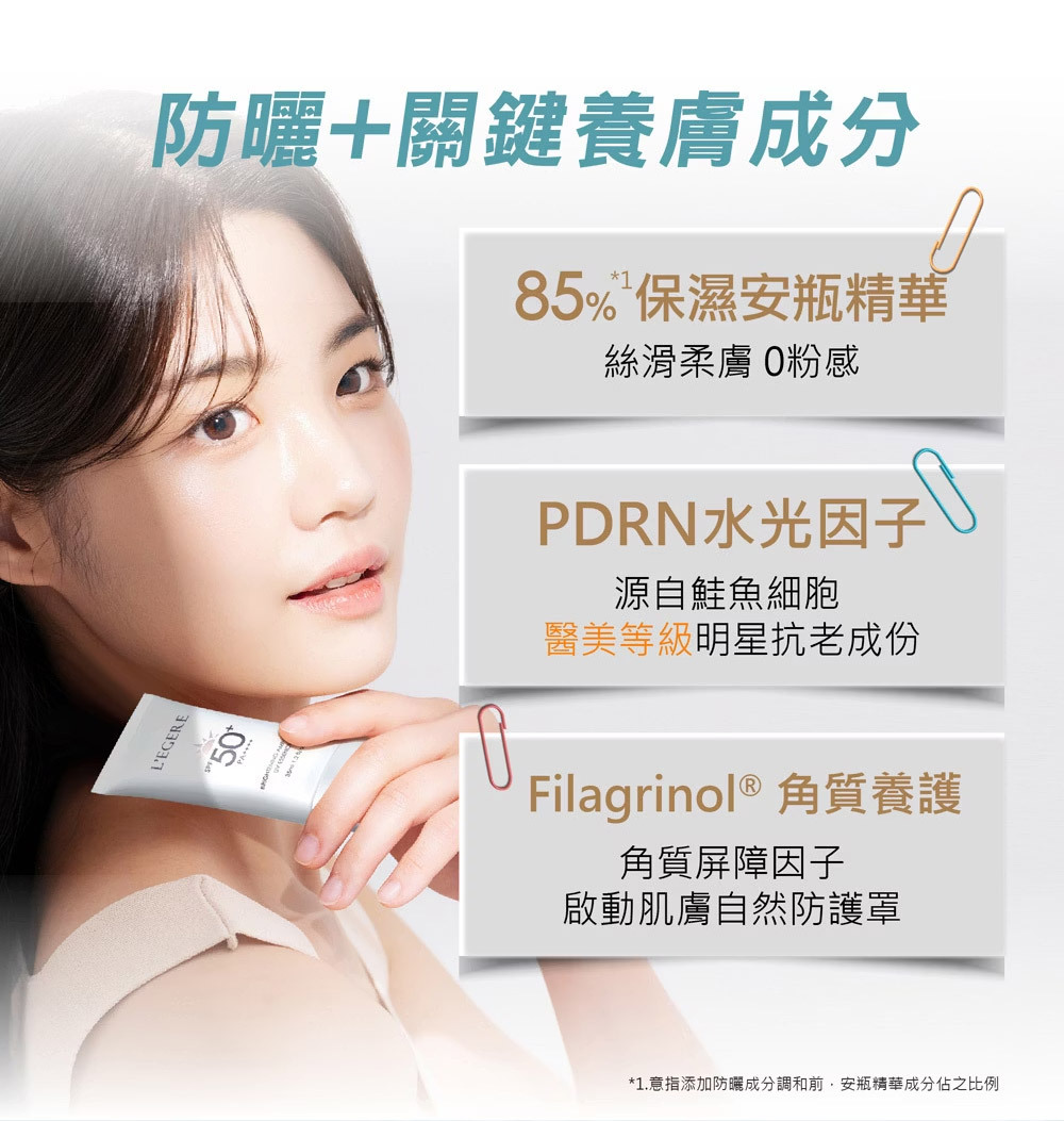 ■ PDRN鮭魚水光因子X角質屏障因子,打造養膚防曬