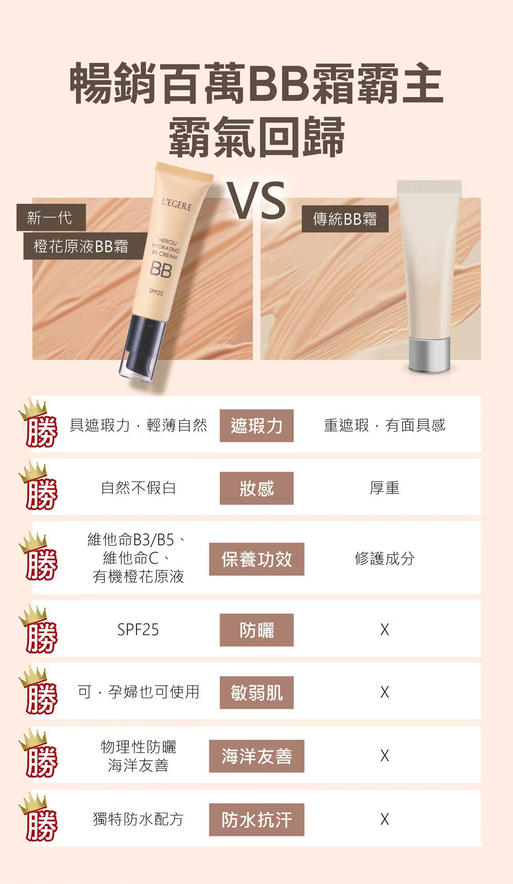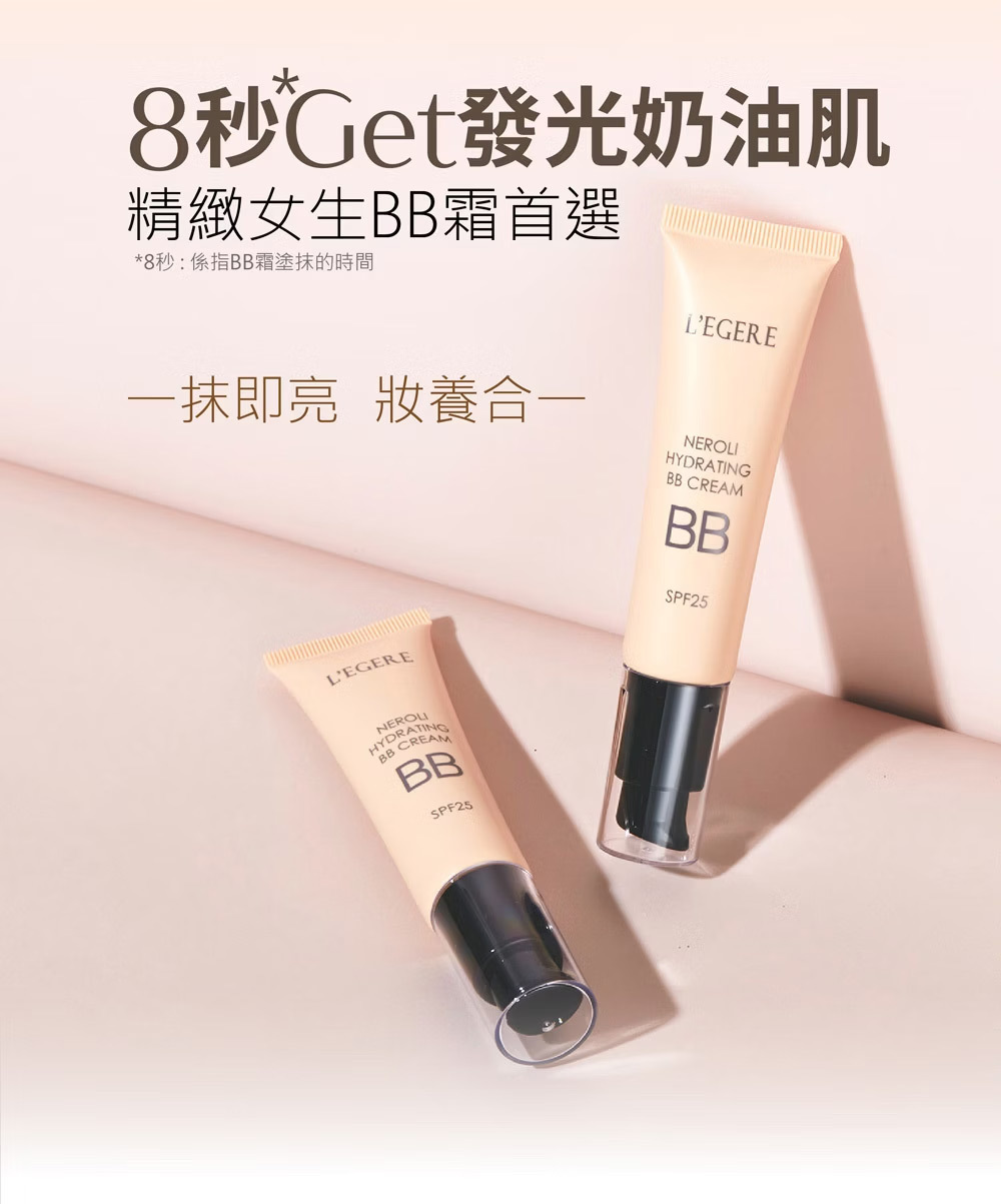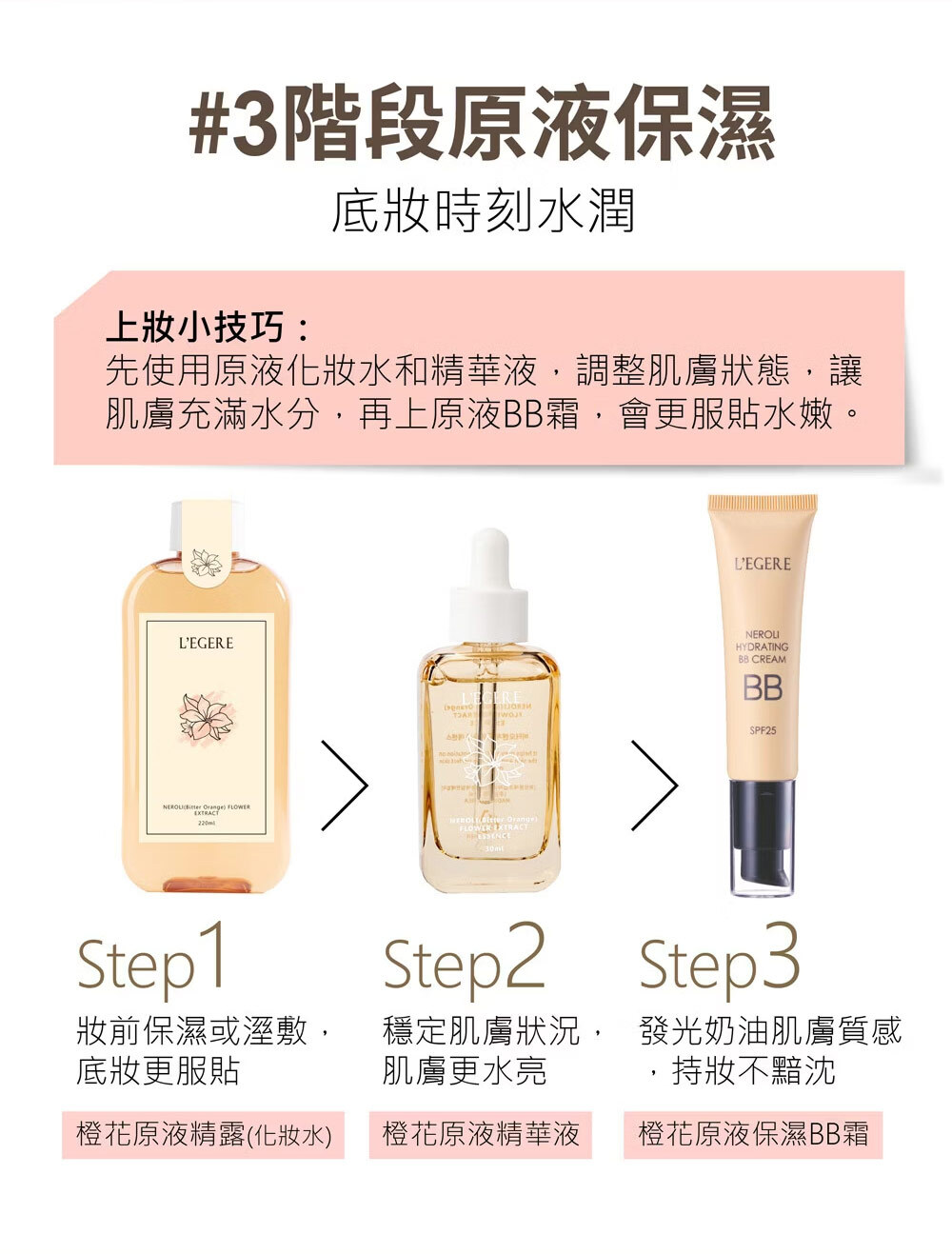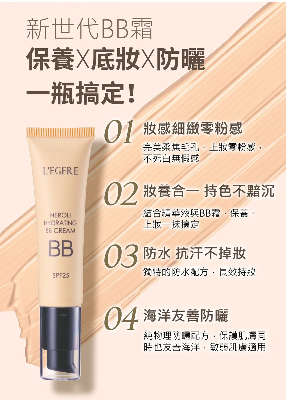 主商品: L'EGERE 橙花原液保濕BB霜SPF25