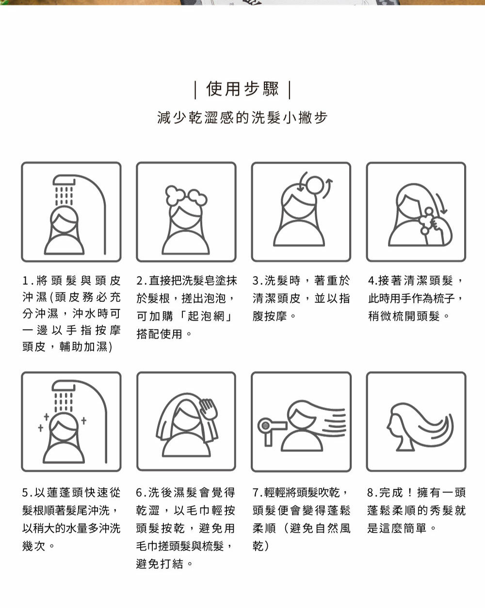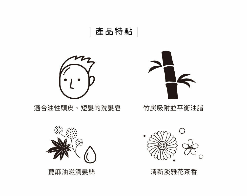 • 專為油性頭皮設計的洗髮皂,適合短髮使用