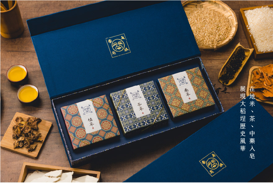• 大春煉皂最經典系列禮盒,以大稻埕在地材料入皂,稻埕系列一次擁有