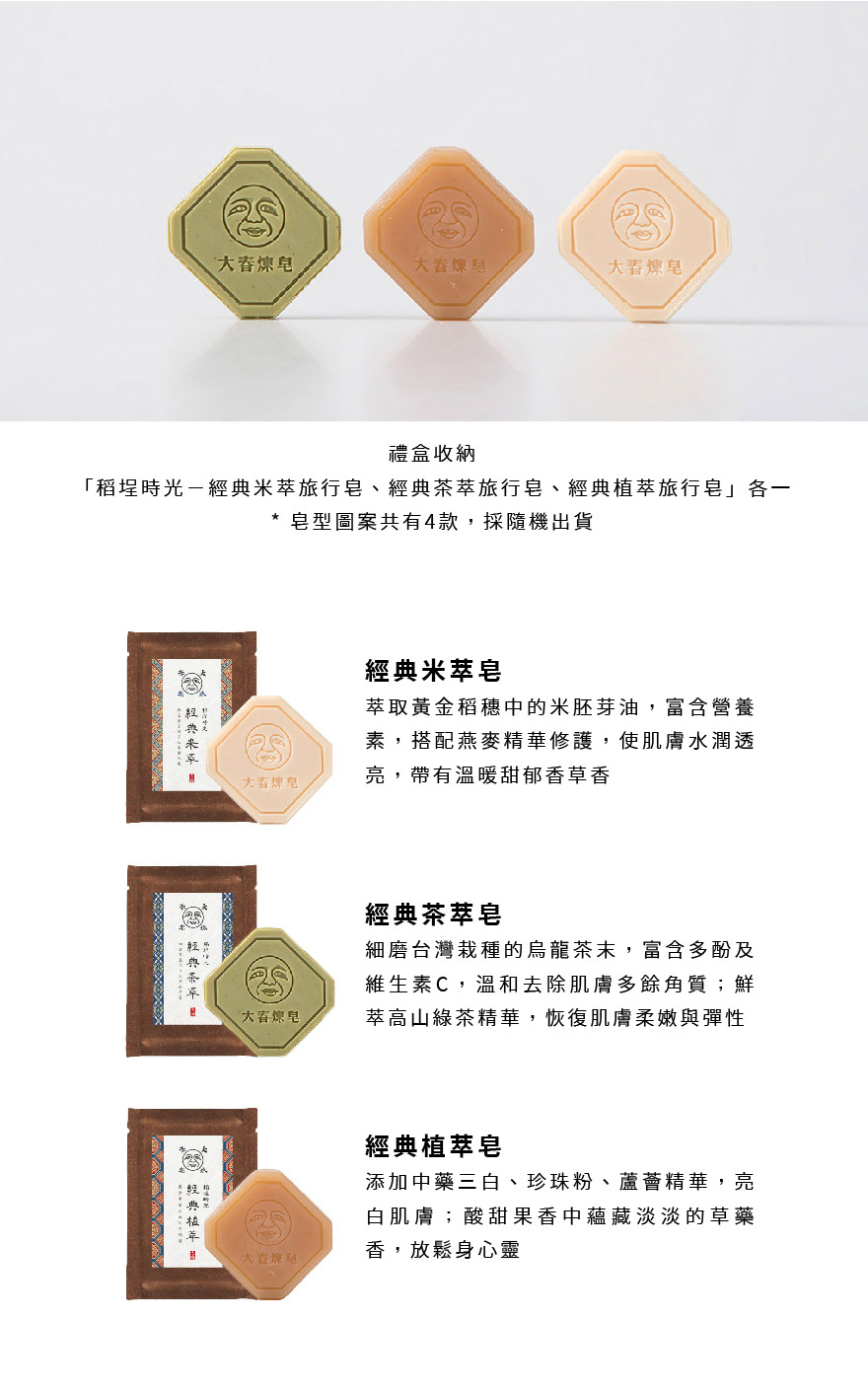 • 大春煉皂最經典系列禮盒,稻埕系列一次擁有