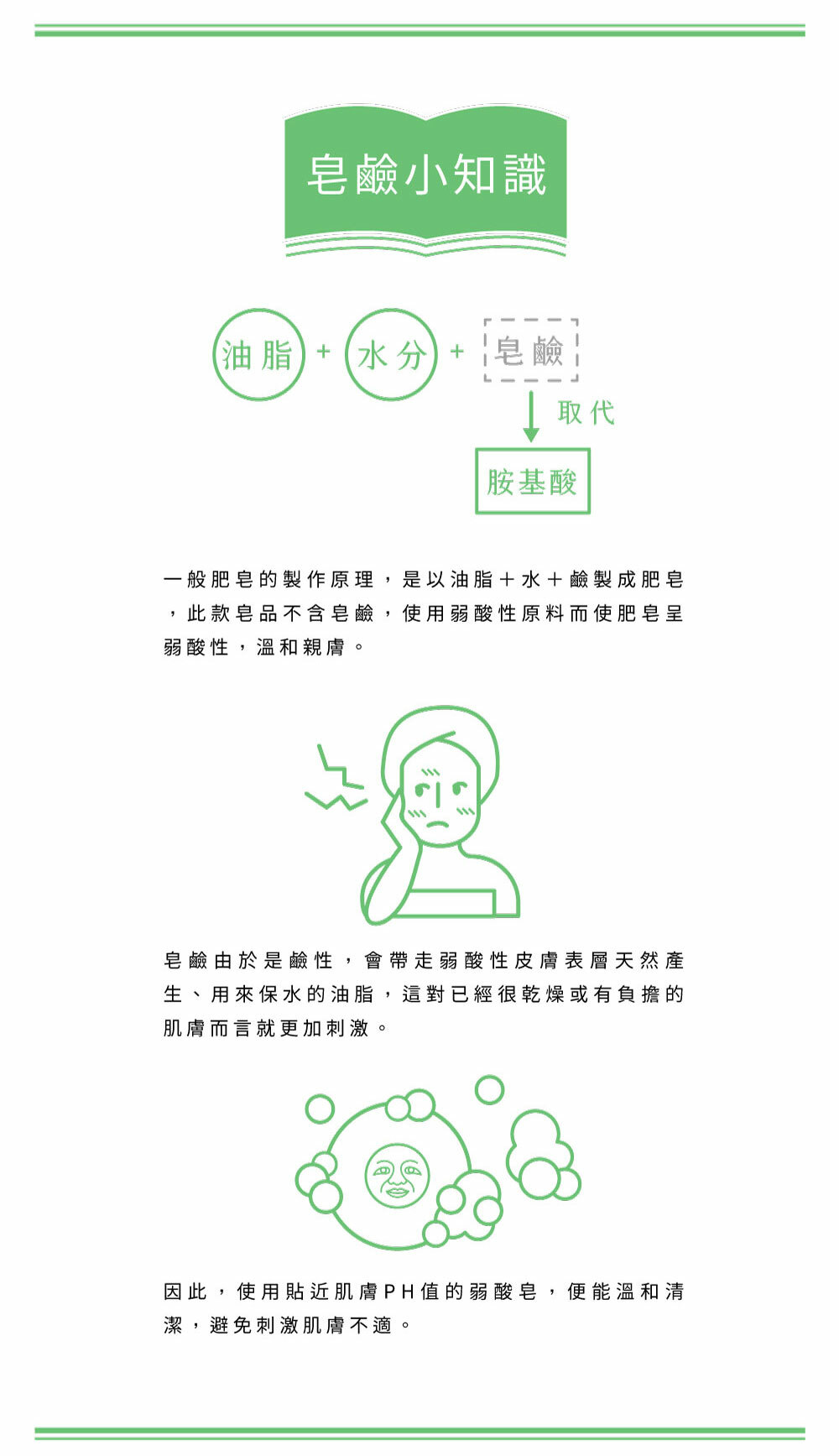 • 不含皂鹼,輕柔潔淨,溫和調理肌膚