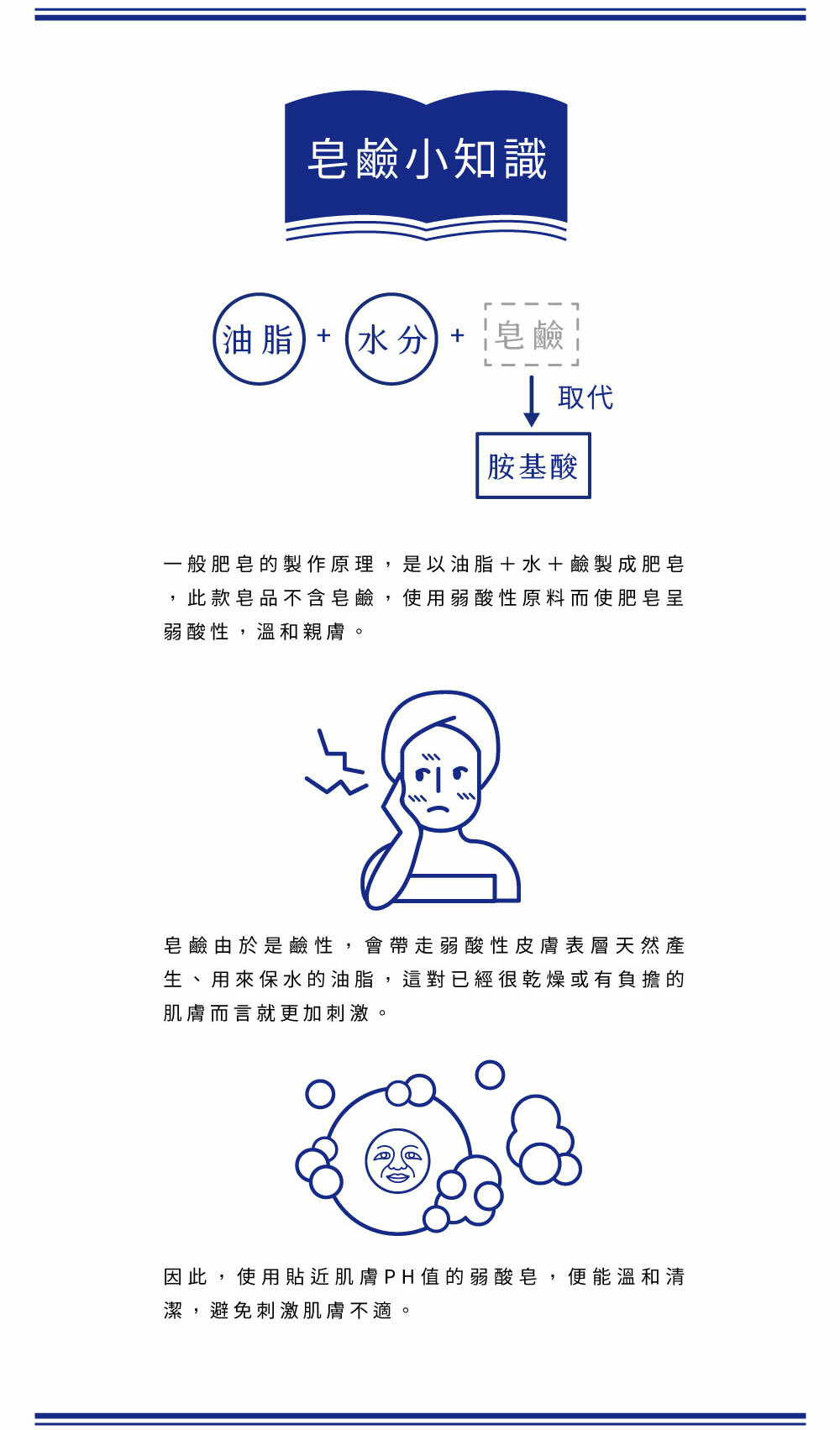 • 不含皂鹼,輕柔潔淨,溫和調理肌膚