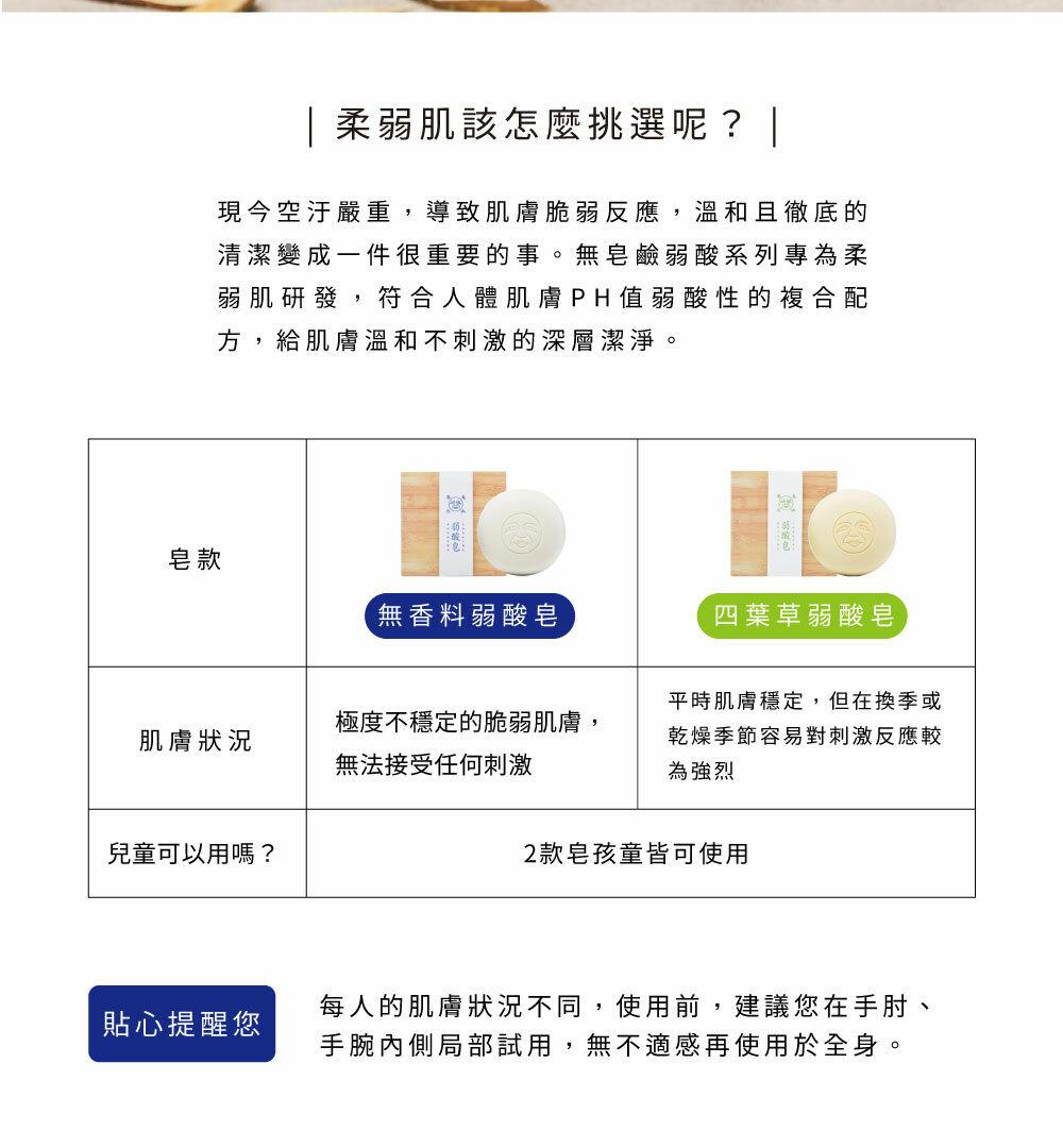 • 專為脆弱肌、兒童設計的沐浴/洗顏皂