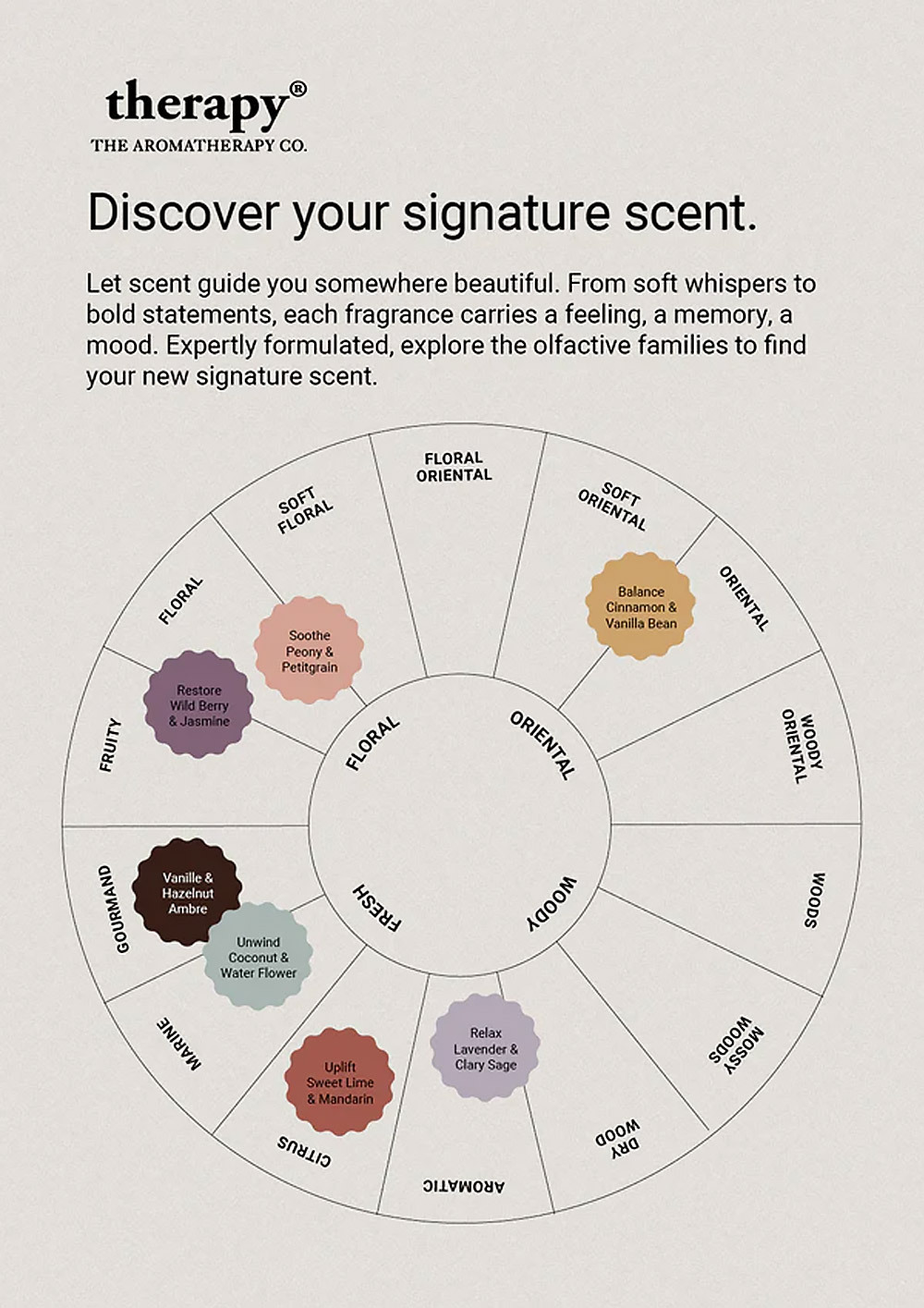 選擇適合您心情的香氛,提振精神、放鬆身心、平衡情緒、舒緩壓力、恢復活力、擁抱美好或徹底放鬆。