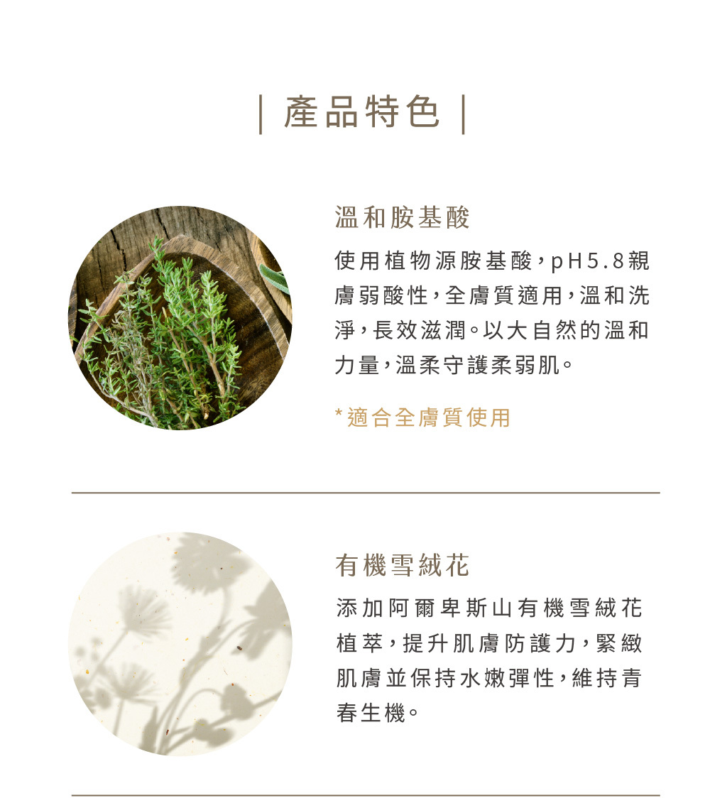 • 阿爾卑斯山有機雪絨花植萃,滋潤賦活