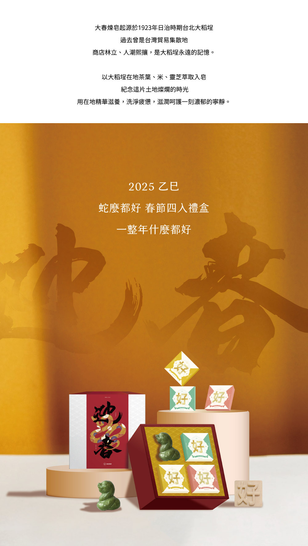 禮盒內容:玉京子皂、經典茶萃皂、經典米萃皂、經典古萃皂,附大春經典牛皮提袋