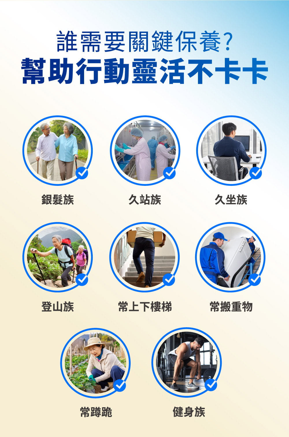 ●幫助您穩固每個環節,讓行動順暢、生活自在