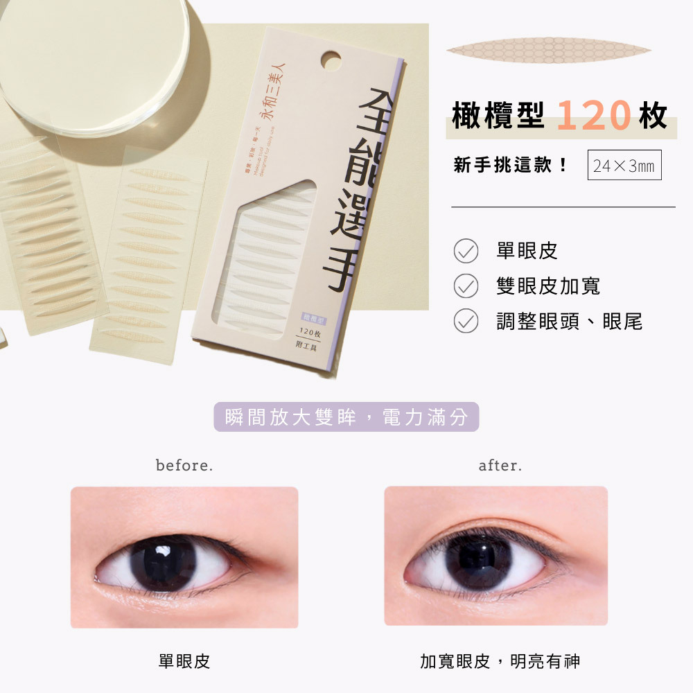 永和三美人|愛了EYES了!雙眼皮貼「全能選手」︱橄欖型 120枚 附工具
