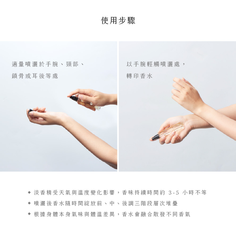 .香味持續時間約 3-5 小時(會受天氣與溫度變化影響)