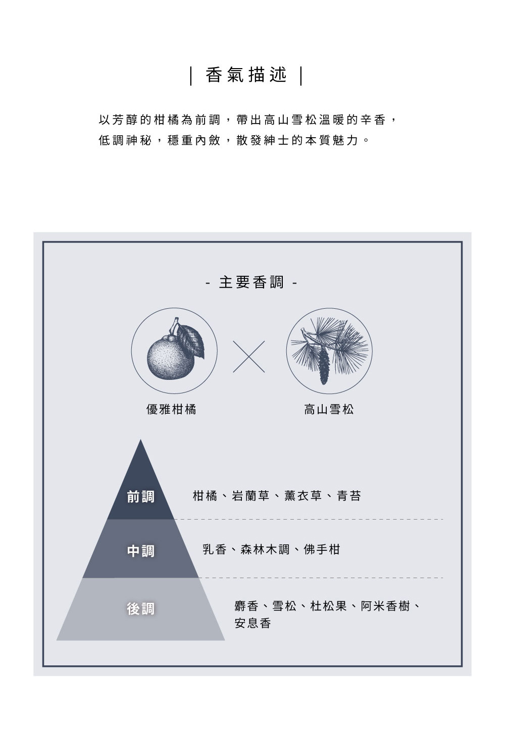 • 優雅柑橘X高山雪松的沉穩木質調,男士香水