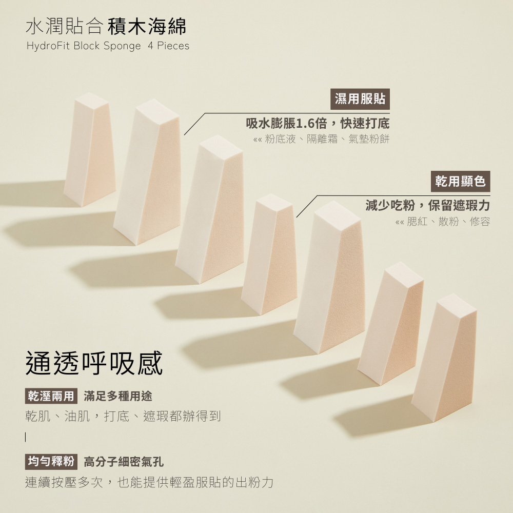 • 濕用服貼,吸水膨脹1.6倍,快速完成精緻底妝