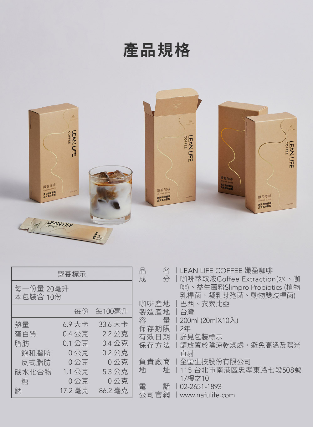 NAFU LIFE 全瑩|LEAN LIFE Coffee 孅盈咖啡 (10包/盒)