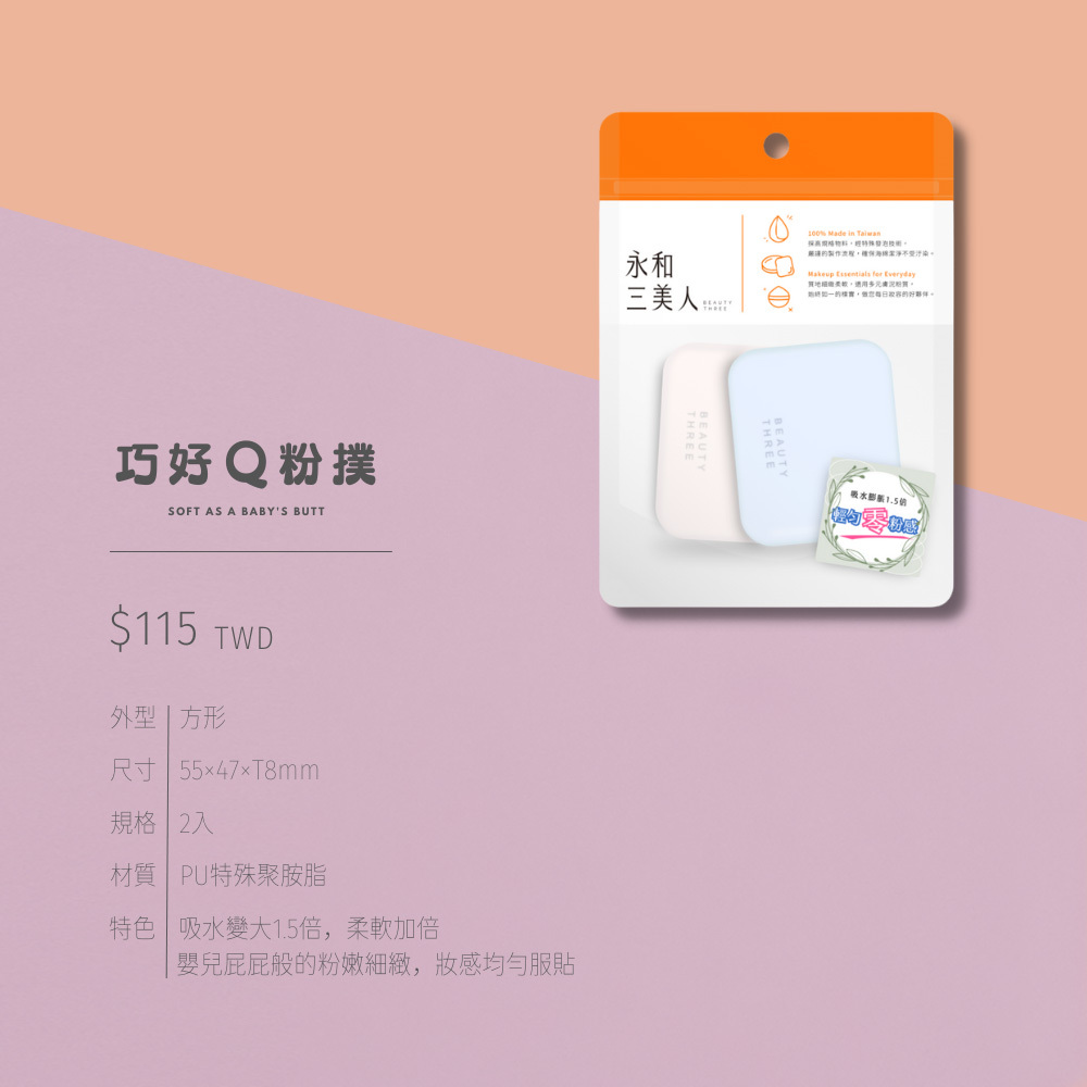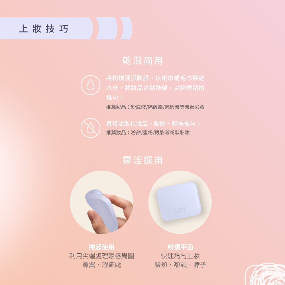 │ 吸水膨脹1.5倍,同美妝蛋材質的平面粉撲