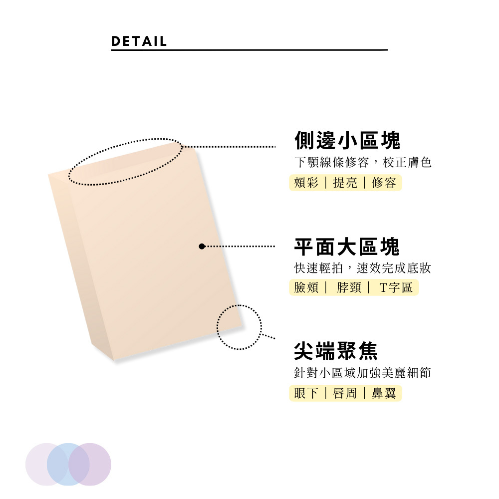 • 大面積+多角度=快速上妝零死角