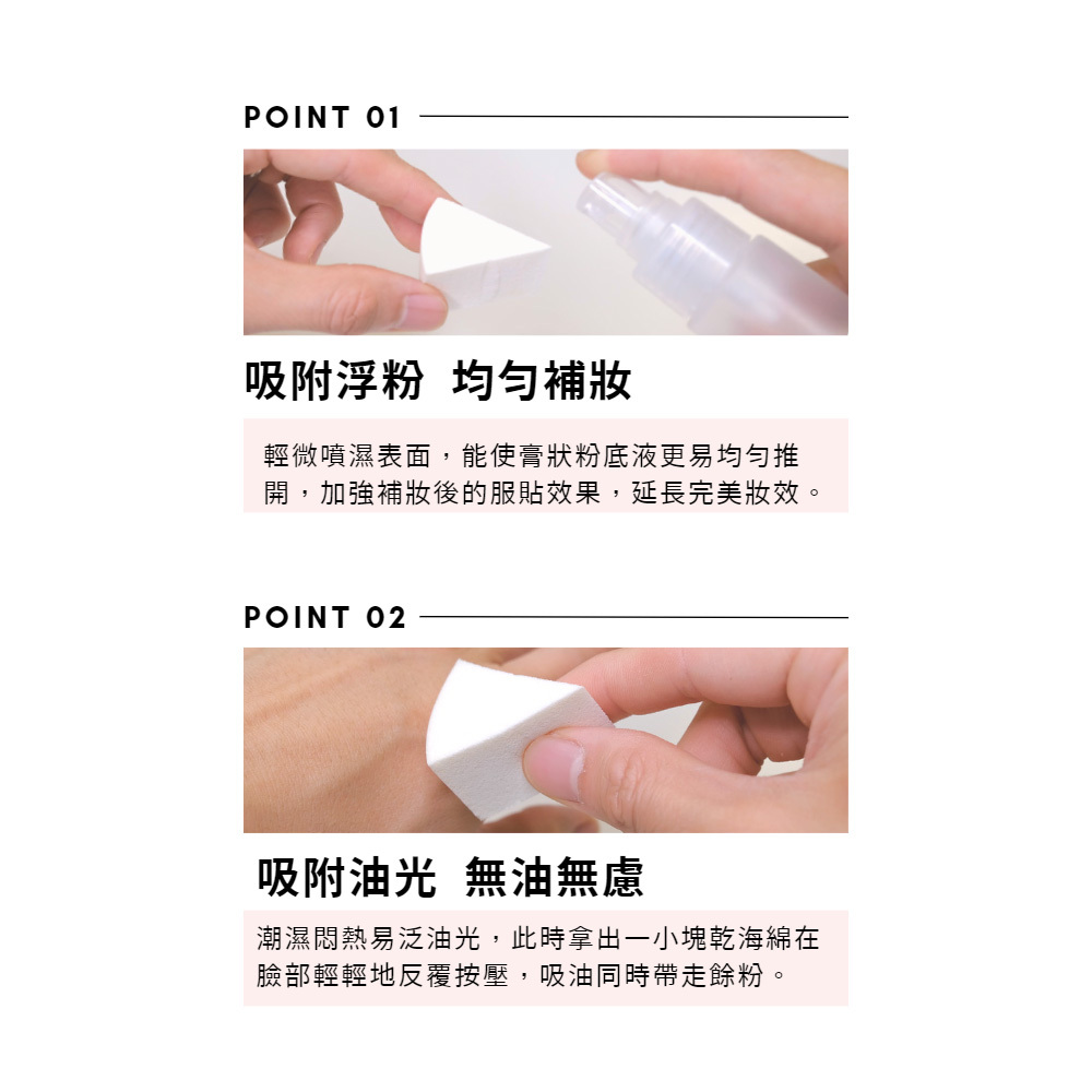 • 平面貼合雙頰,切面針對細節