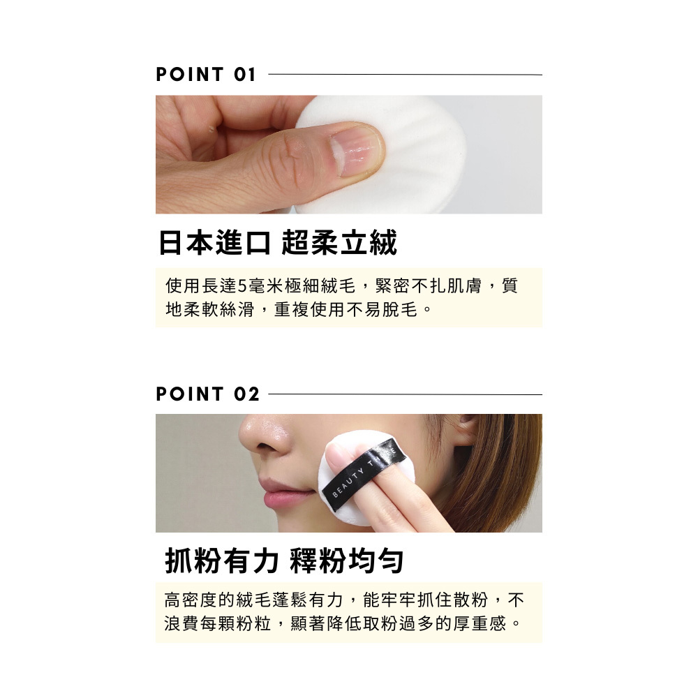 用途:可乾濕兩用;沾取適量蜜粉,以輕拍按壓方式上妝,打造服貼的自然底妝。
