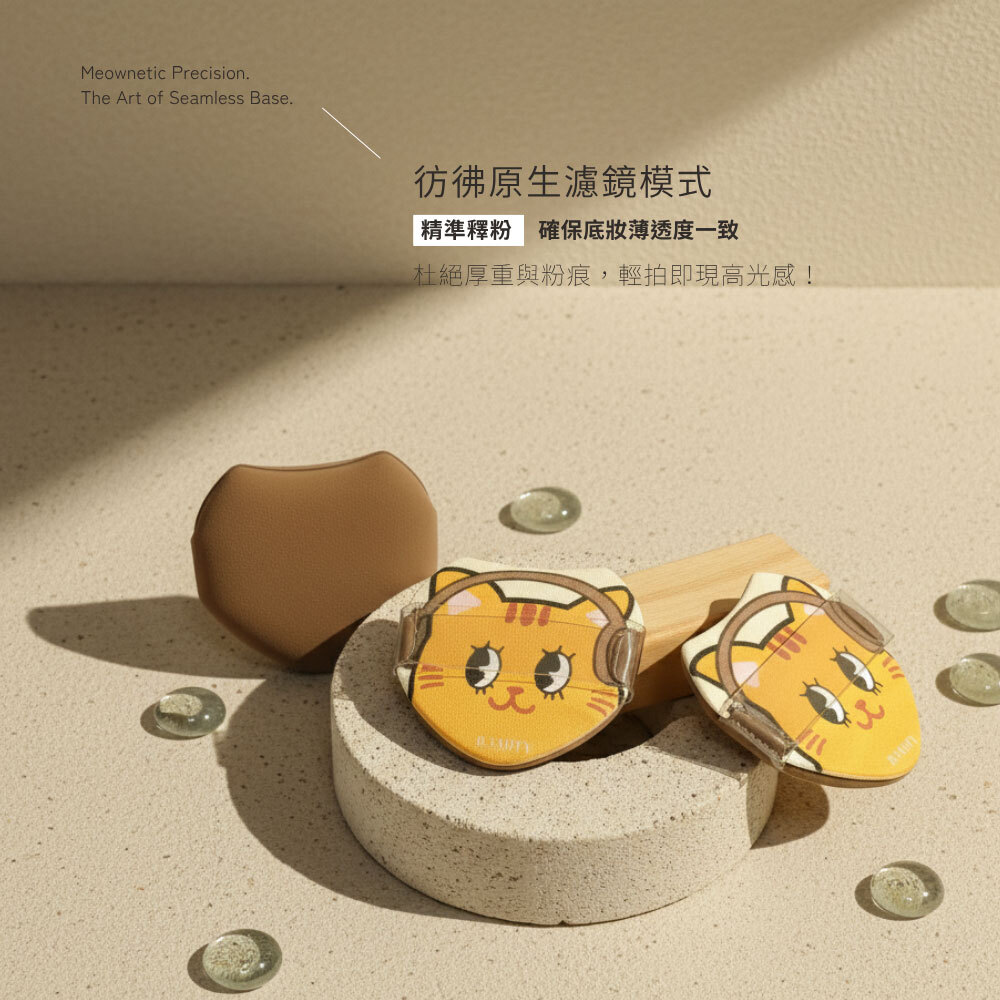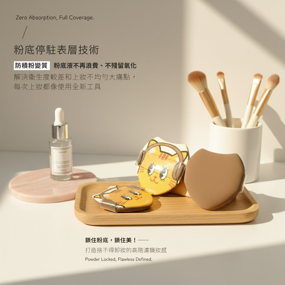 氣墊粉撲的膜力進化!創新「隔離膜結構」鎖粉不吃粉,粉底不滲芯。