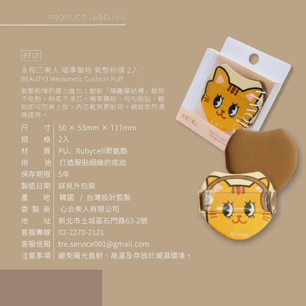 永和三美人 喵準鎖粉 氣墊粉撲 2入