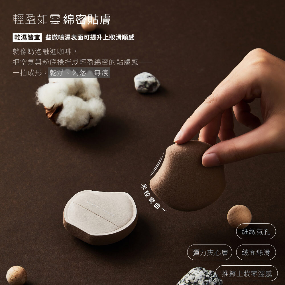 特別適合液狀粉底,輕拍間將空氣揉進妝容,呈現細緻綿密的奶泡肌。