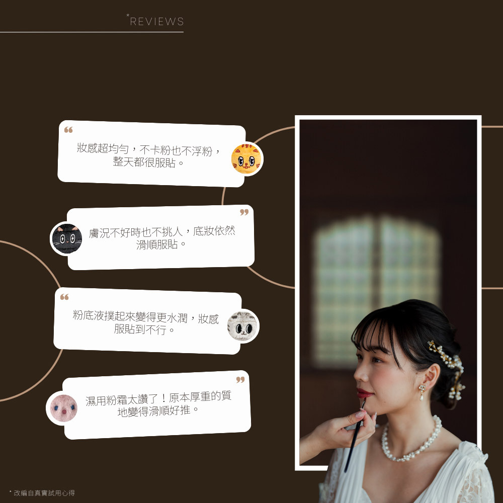 高支撐力結構讓上妝穩定細緻,輕柔覆蓋每一寸肌膚,打造無暇的輕薄奶凍肌。