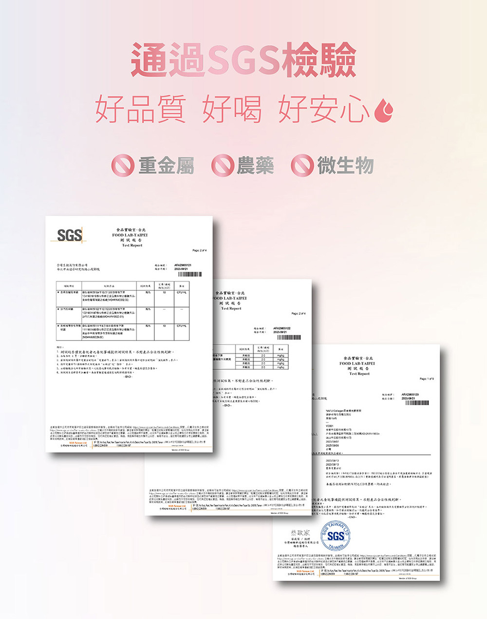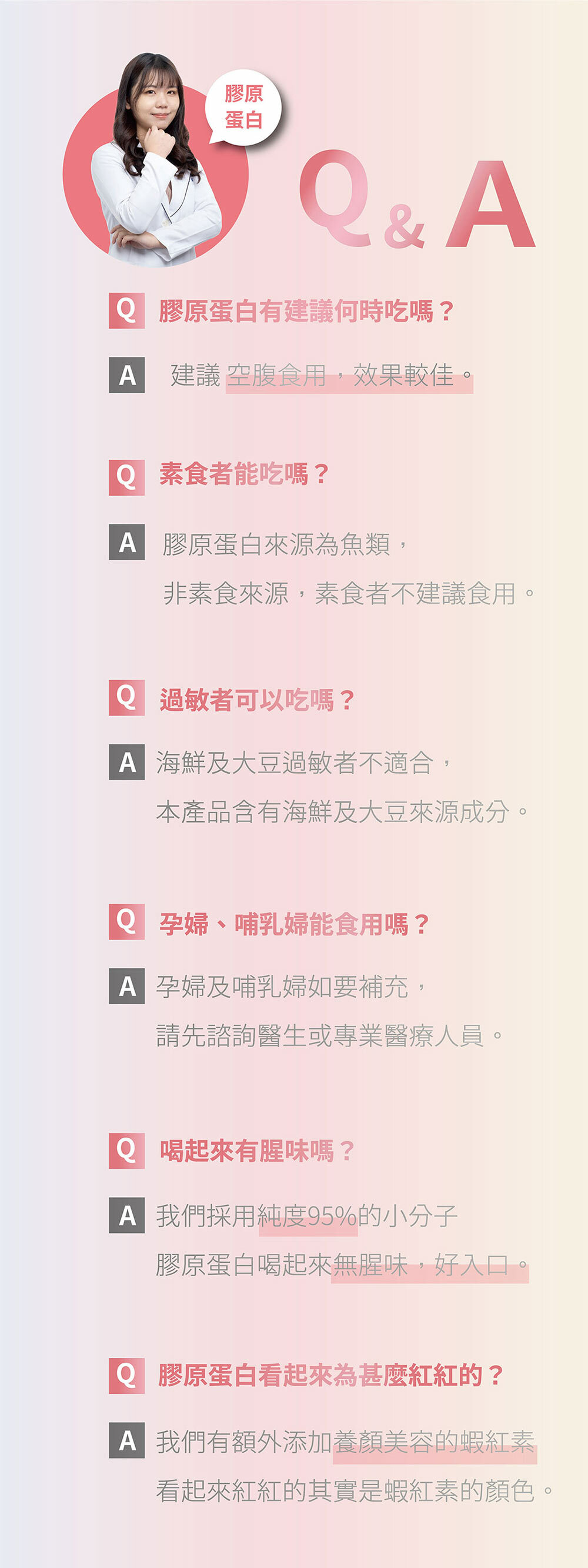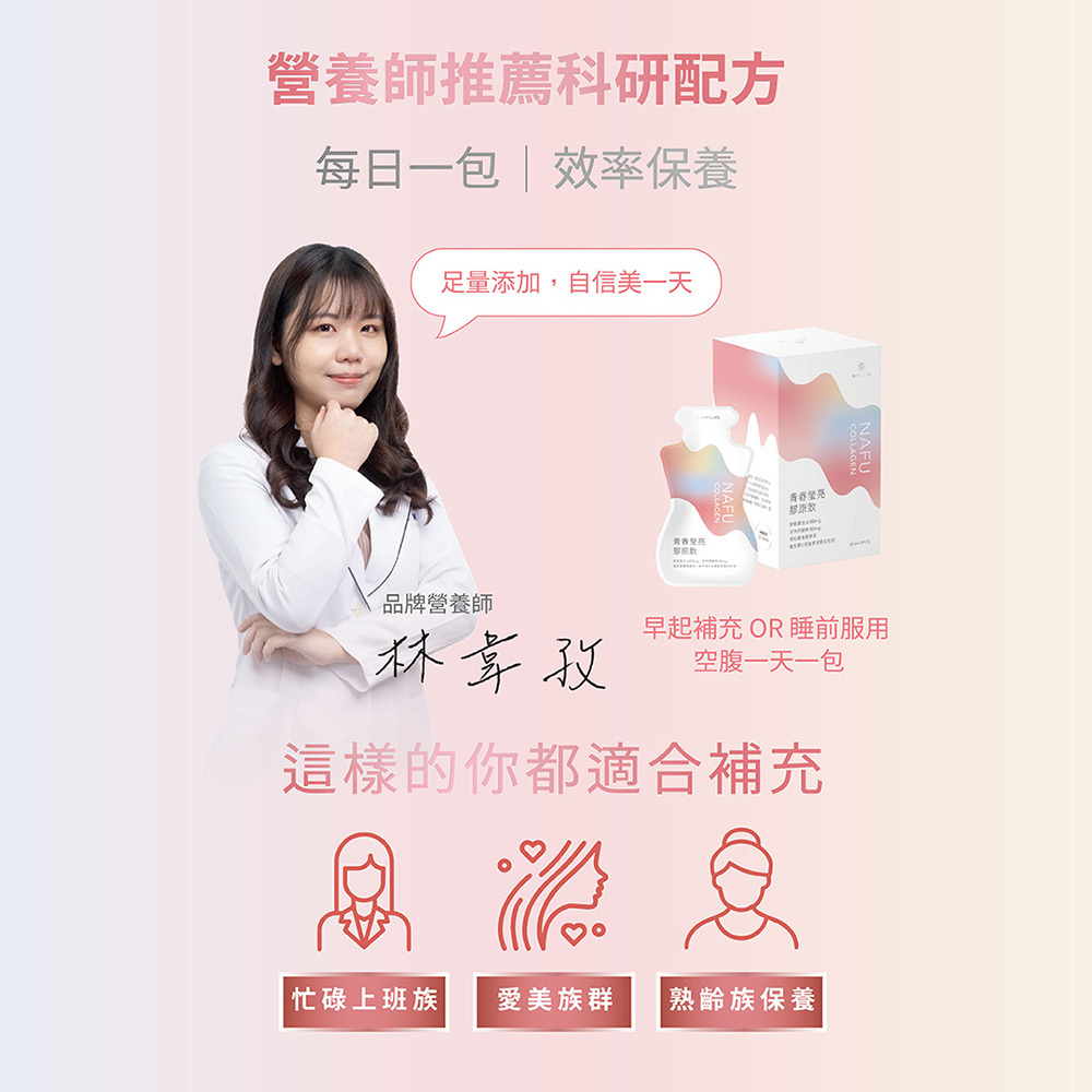 水、魚膠原蛋白、綜合莓濃縮汁(蘋果、蔓 莓、草莓、覆盆莓、櫻桃、黑醋栗、醋栗) 糖、蘋果濃縮汁、檸檬酸、urWay-C複方 生素C(抗壞血酸、柑橘萃取物、米粉)、 料、流行鏈球菌發酵物(含透明質酸鈉)、專利 紅素(紅藻粉麥芽糊精、氧化、卵磷脂 L-抗壞血酸棕櫚酸酯、d-a-生育酚(維生素E) 迷迭香提取物)、米抽出物(玉米糊精、米抽 物)、葡萄萃取物、甘氨鐵(甘氨酸鐵 檬酸、麥芽糊精、二氧化矽)、玫瑰花瓣萃取物 。