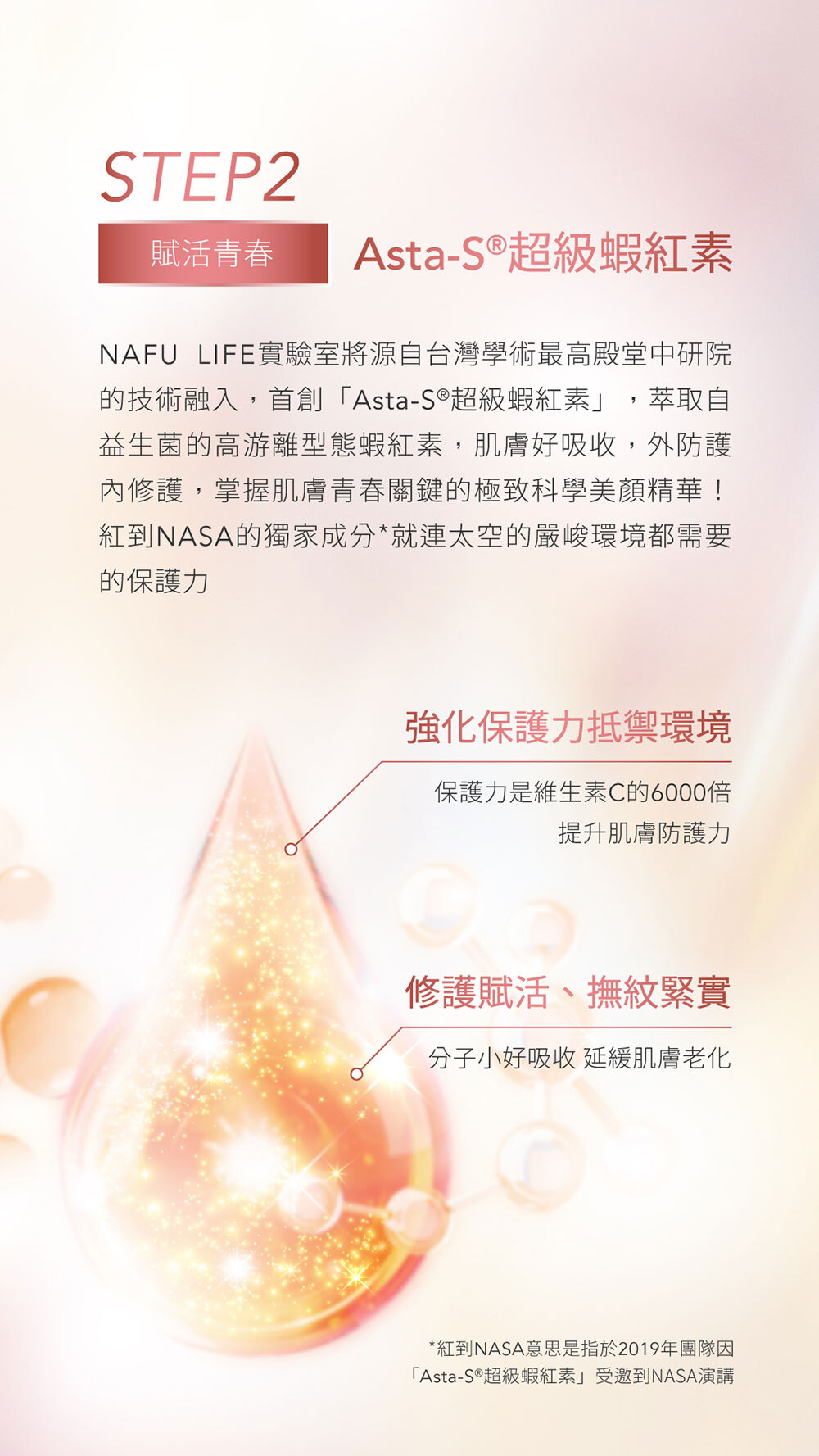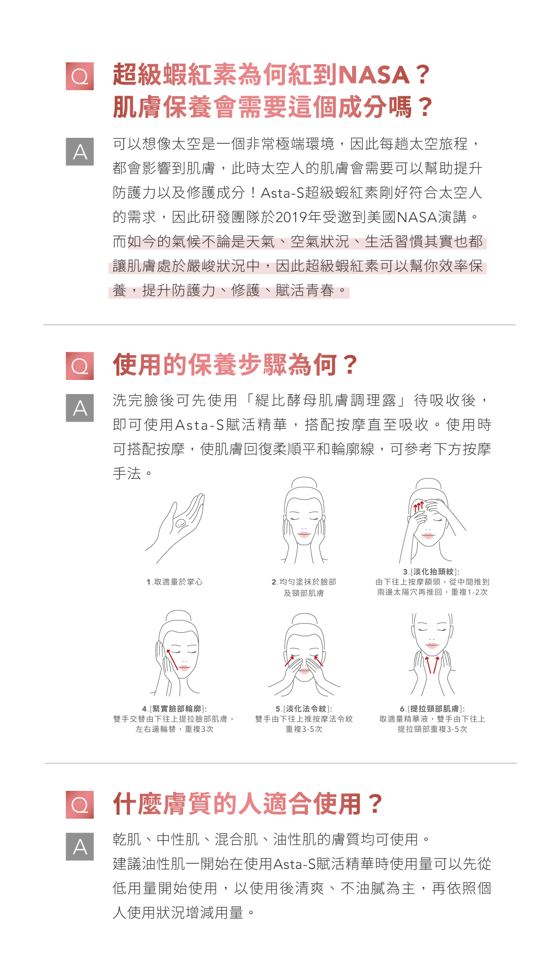 用法 使用化妝水後,取適量精華液輕拍塗抹於肌膚至吸收即可。