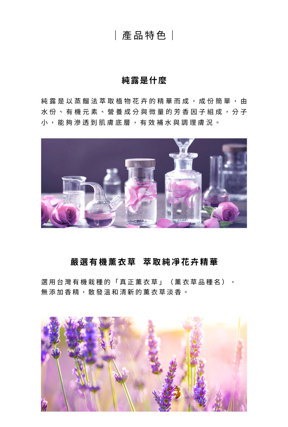• 台灣農場鮮摘有機花卉,蒸餾萃取 100% 花水製成
