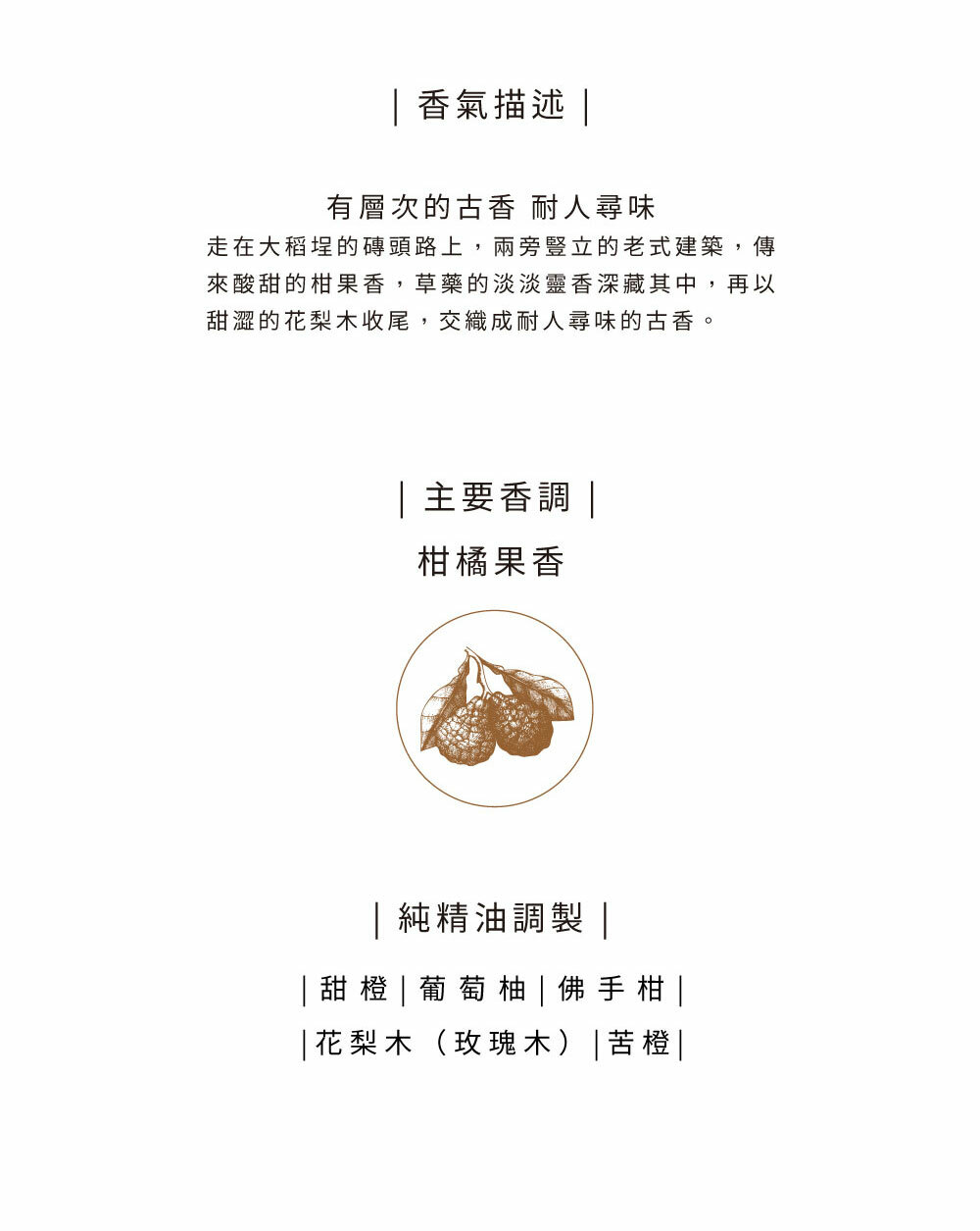 香氛:柑橘木質古香