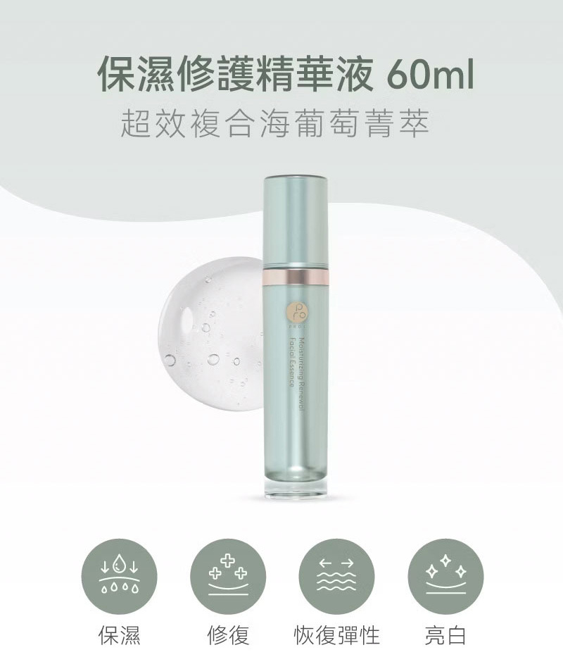 注入高效保濕海洋能量精華,釋放嬌貴海葡萄菁萃,可有效提升肌膚飽水潤澤度,一抹開啟肌膚保養生機,啟動前導賦活能量,將後續滋養全面鎖入,賦予肌膚極致感受,無瑕可擊。