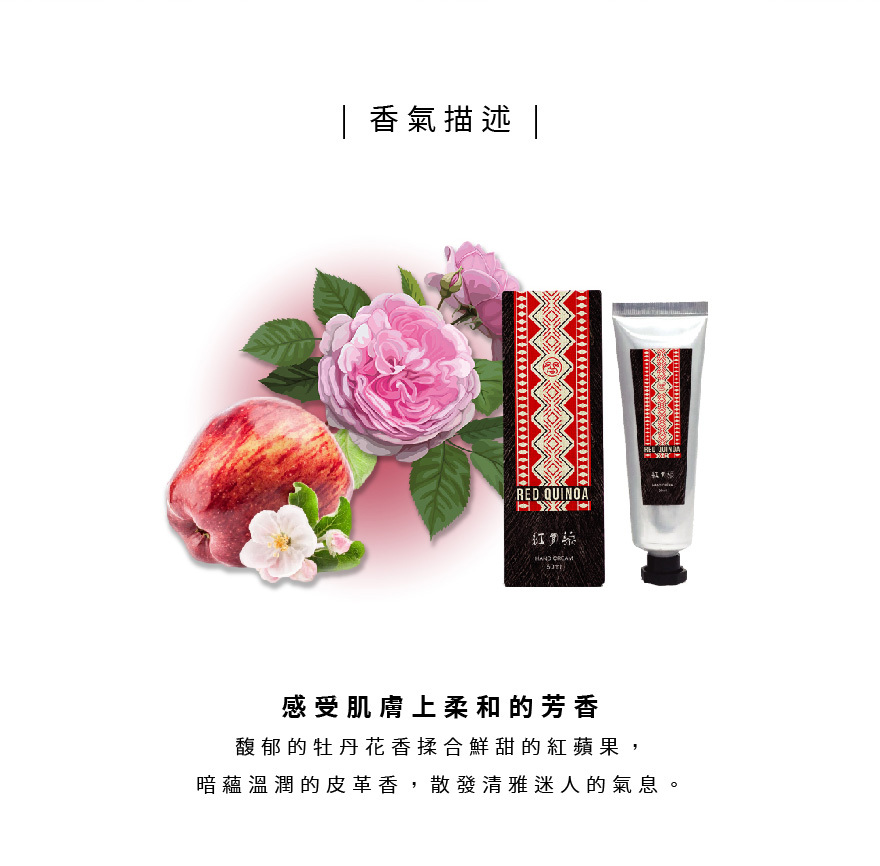 香氛:牡丹、紅蘋果(花香皮革調)