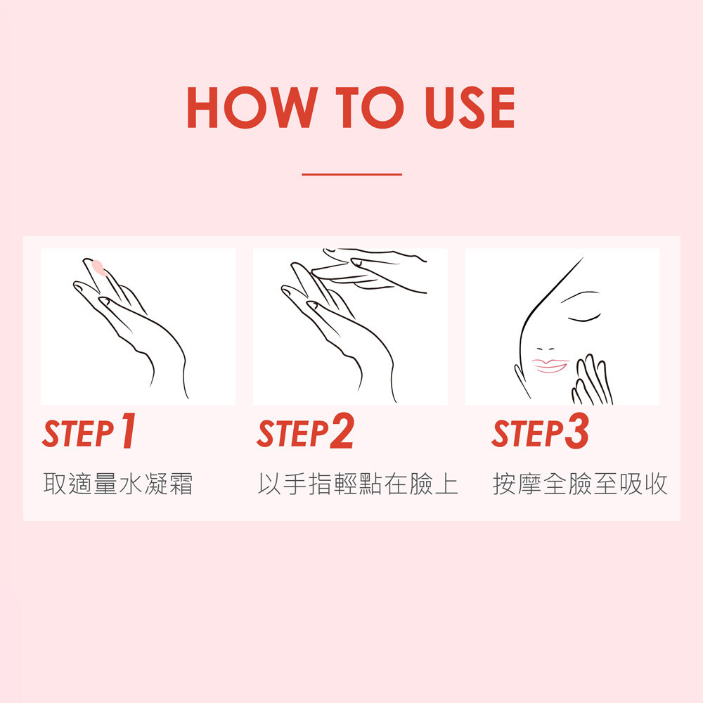 使用方法: 化妝水、精華液後,取適量均勻塗抹於全臉即可。