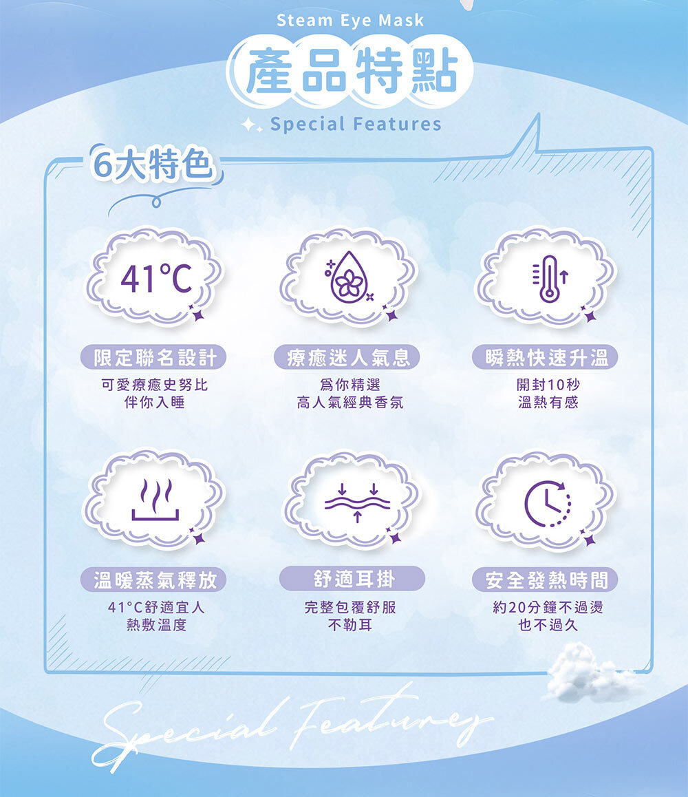 產品名稱:41度C|史努比聯名 蒸氣熱敷眼罩 - 薰衣草香
