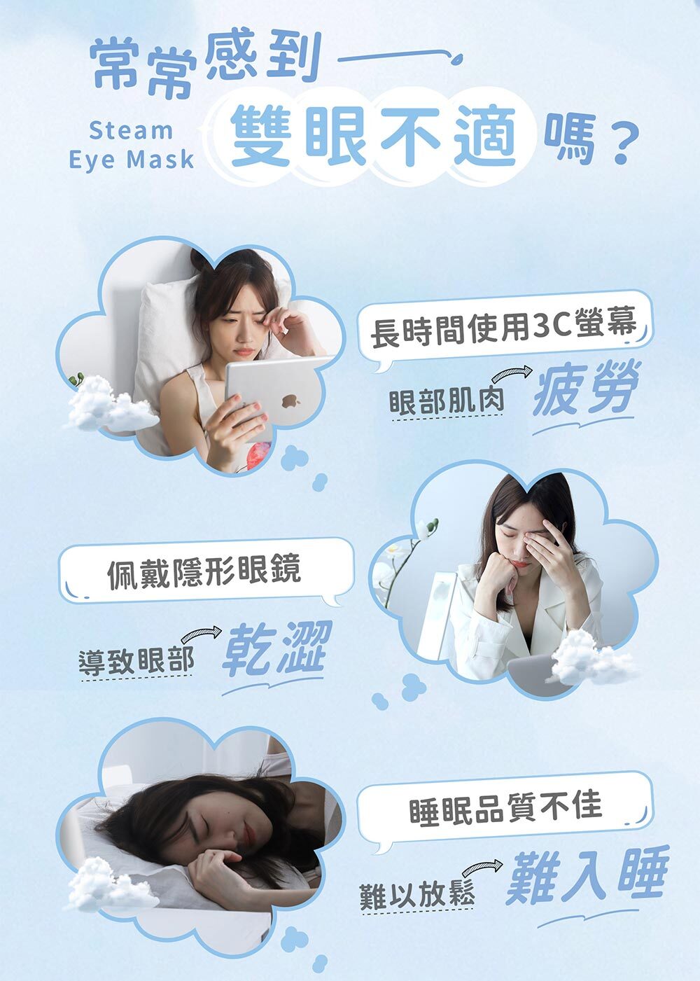 ● 有眼疾或眼睛發炎者,請勿使用。
