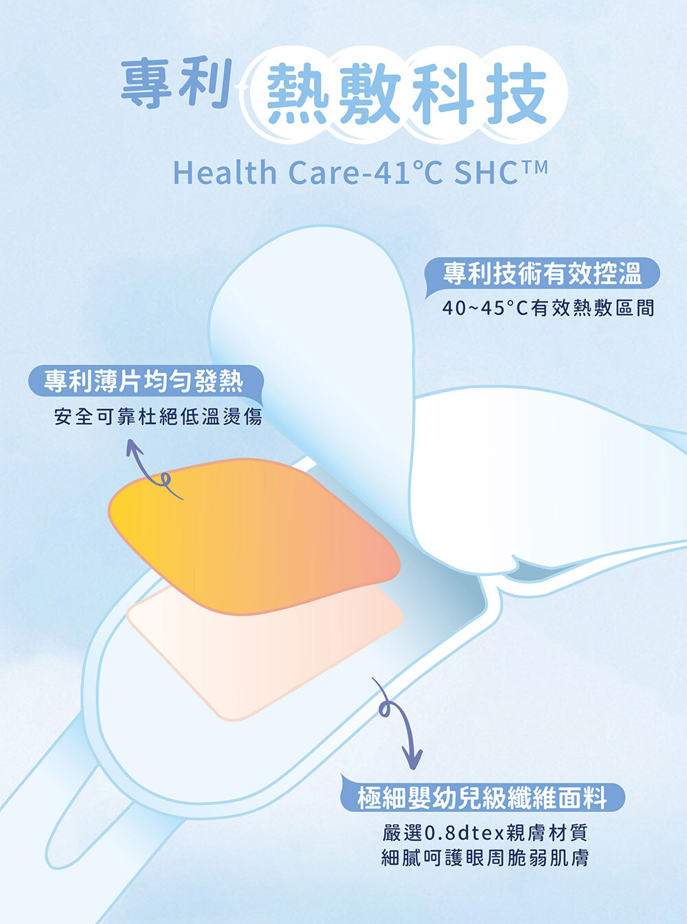 溫暖蒸氣釋放:41℃舒適宜人熱敷溫度