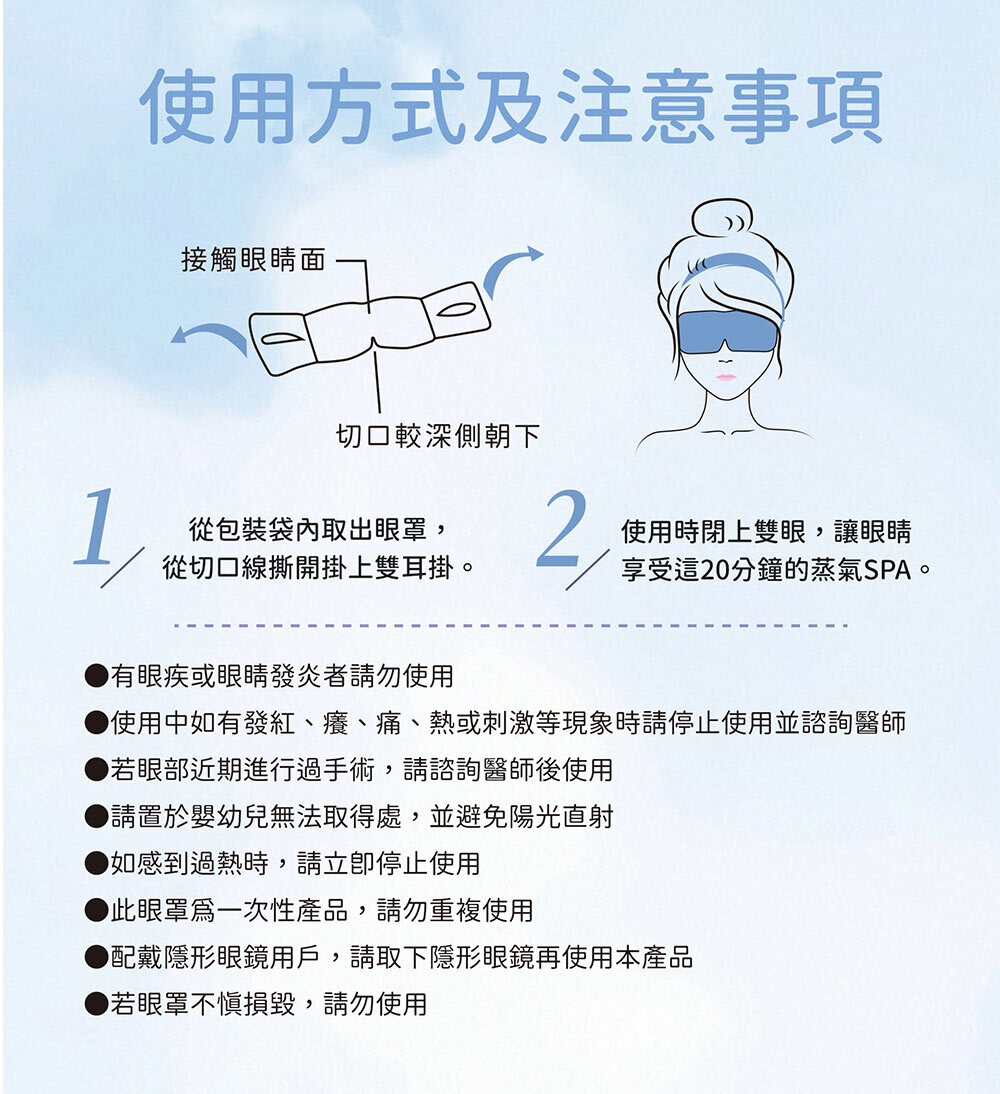 ● 此眼罩為一次性產品,請勿重複使用。