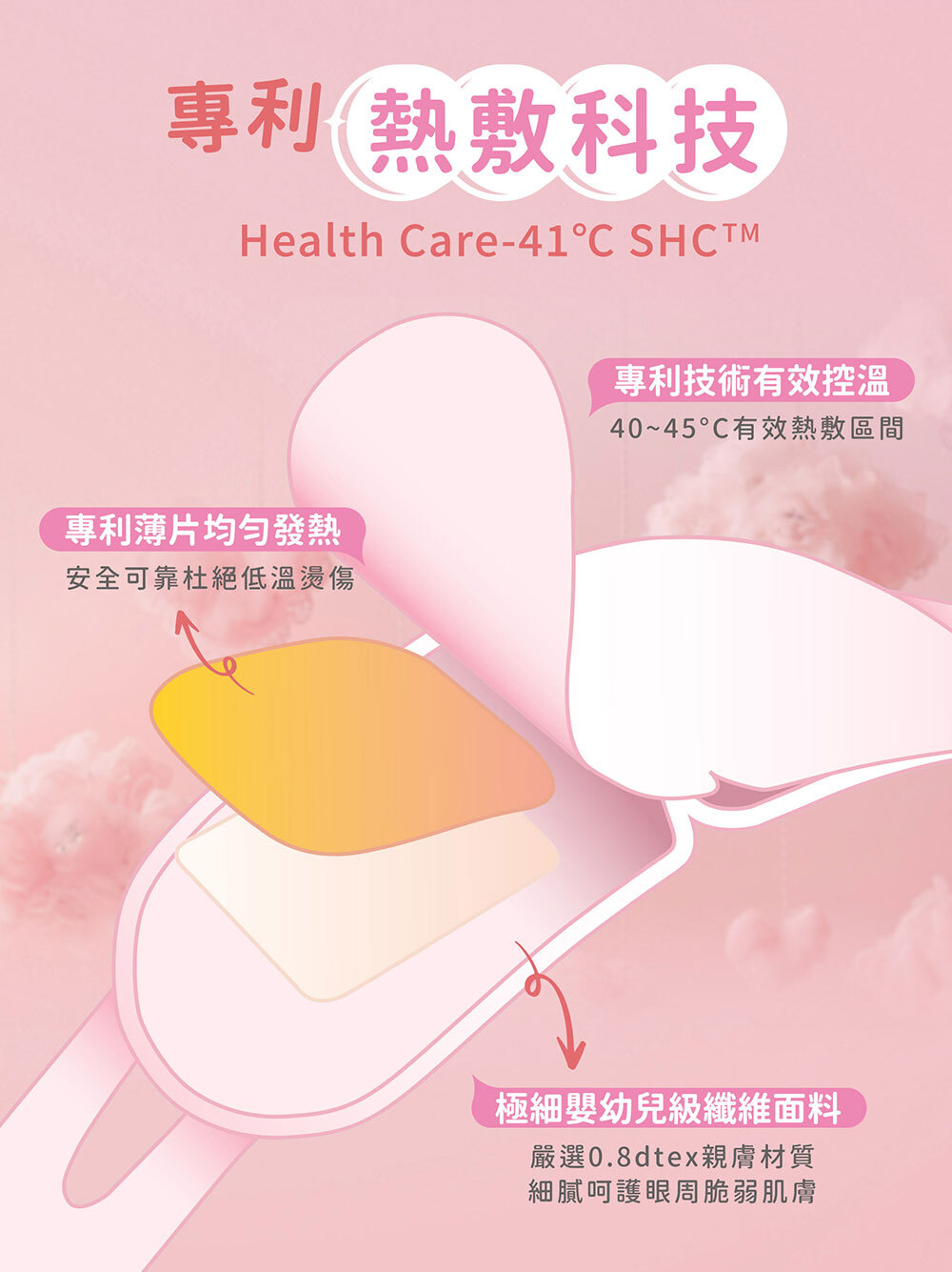 溫暖蒸氣釋放:41℃舒適宜人熱敷溫度