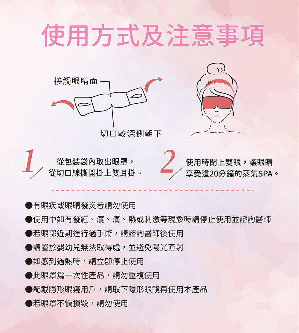 ● 此眼罩為一次性產品,請勿重複使用。