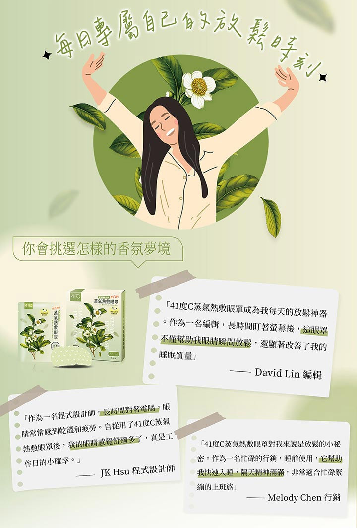 商品名稱:41度C|雲朵感蒸氣眼罩-茶林微風 (5片/盒)