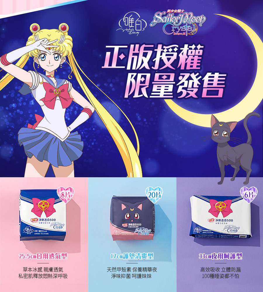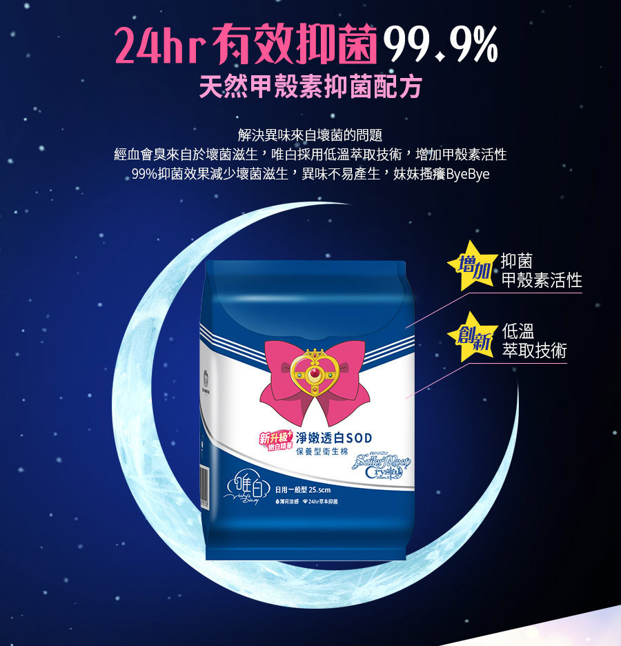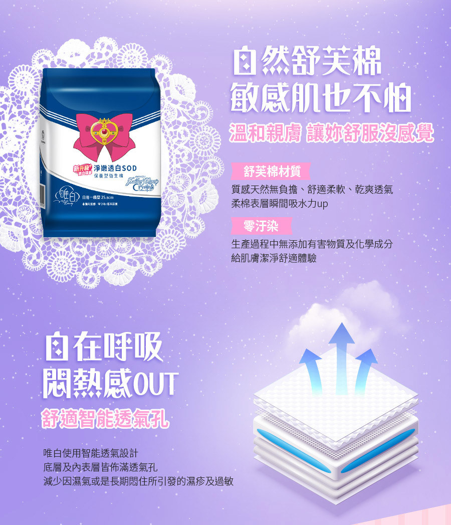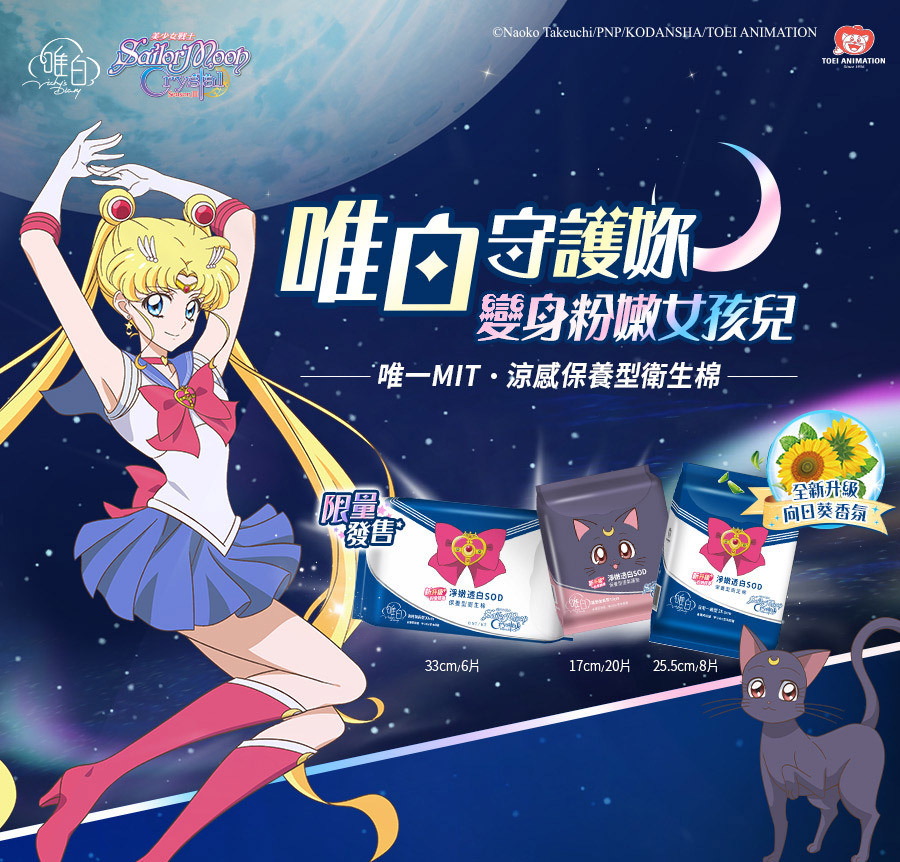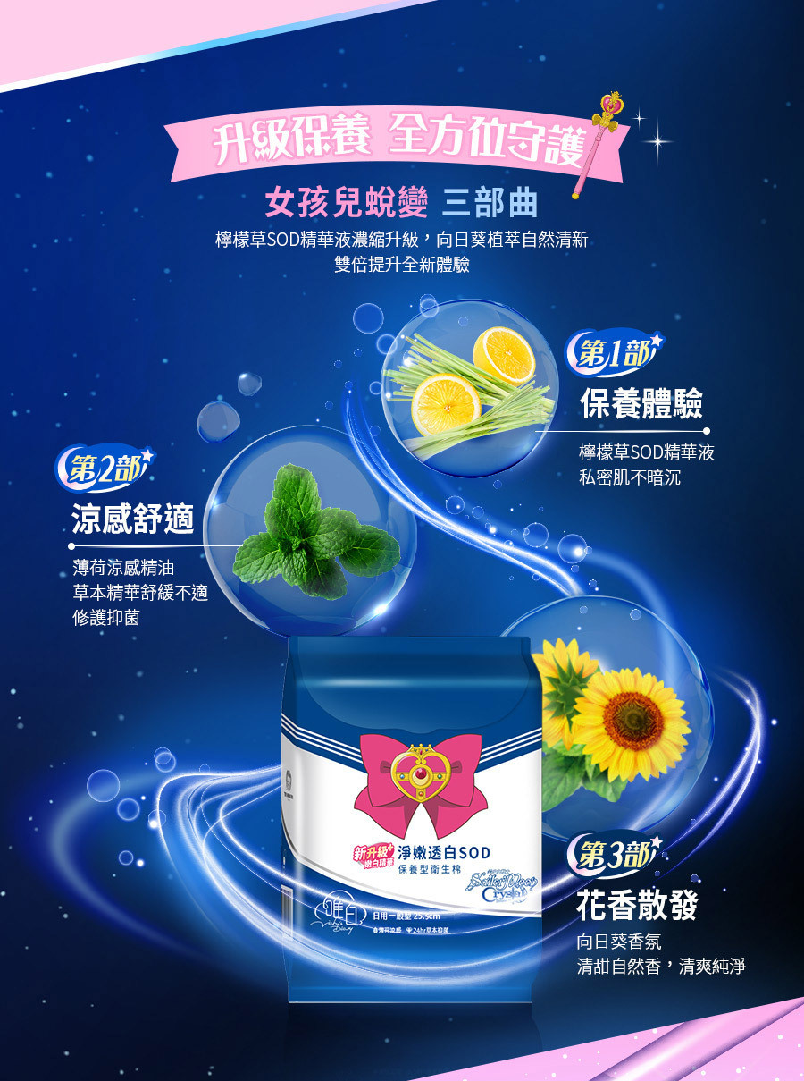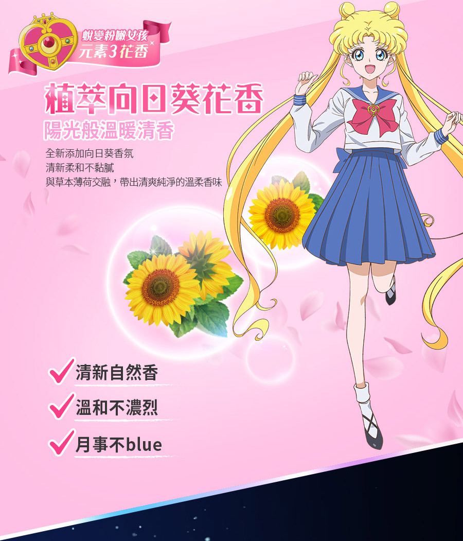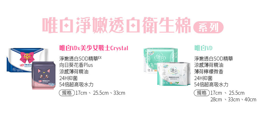 商品名稱:唯白 Vichy's Diary|美少女戰士 Crystal 淨嫩透白SOD草本抑菌衛生棉 - 沁香向日葵