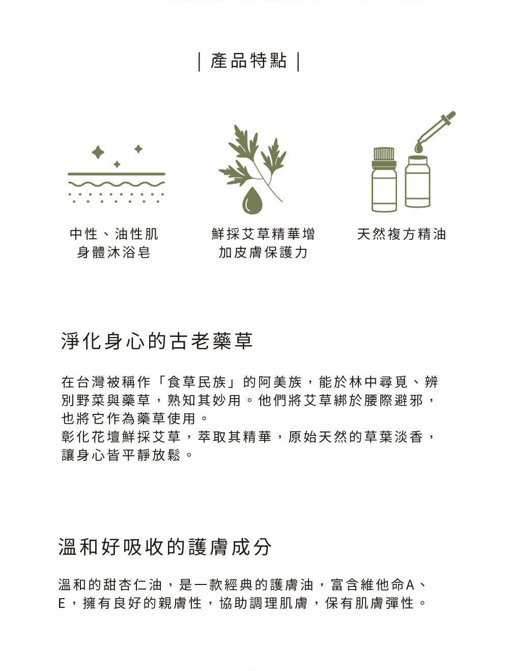 • 萃取彰化鮮採艾草之精華,增加皮膚保護力