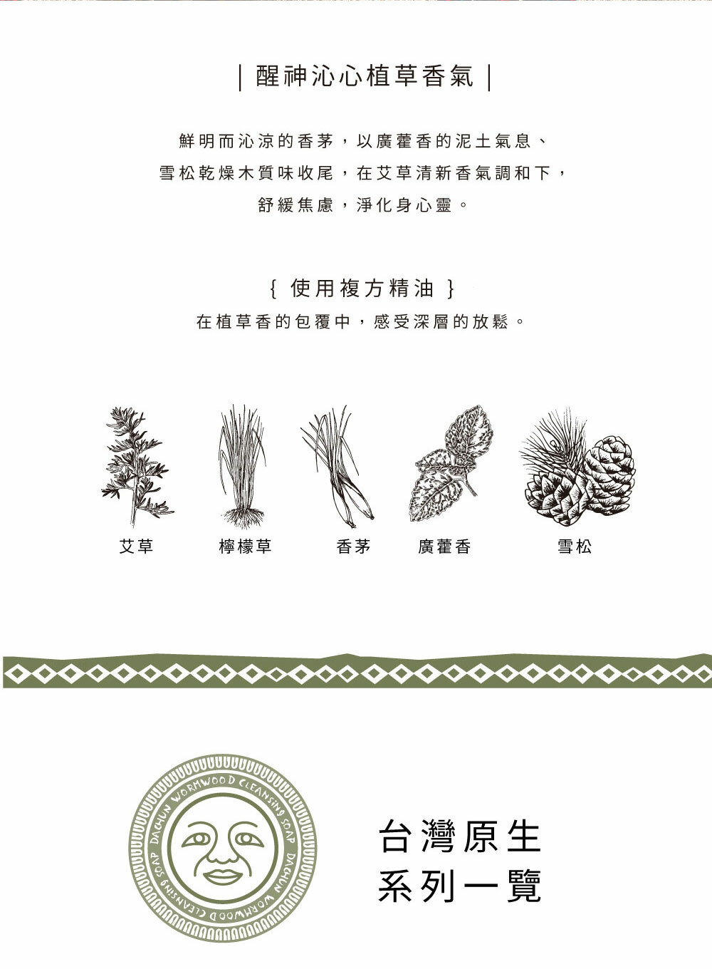商品名稱:台灣原生・艾由心生 複方精油皂 Taiwan Native -Wormwood Soap